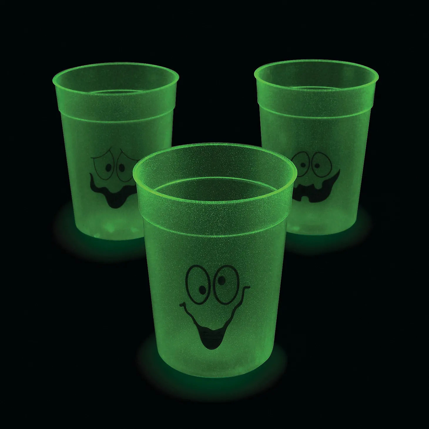 Glow-In-The-Dark Spooky Face Halloween Bpa-Free Plastic Cups – 12 Ct.
