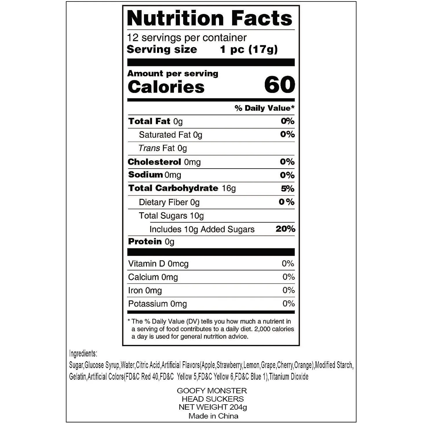 These Silly, Scrumptious Lollipop Creatures Are Friendly, Not Scary! Put Them In Treat Bags Or Stick Them In Home-Baked Cupcakes. Setting Up A Candy Buffet At Your Halloween Or Birthday Party? Add These Monstrously Delicious Suckers To Your Banquet Of Sugary Delights! © Otc• Orange, Lemon, Strawberry, Apple, Grape And Cherry Flavored.• Individually Wrapped. • Includes 2″ Suckers On 4″ Sticks.• Total Wt., 7 Oz. • Assortment May Vary. • Fat-Free. • Candy Is Non-Returnable. For More Information, Visit Our “Return Policy” Page Located On Our Website.• Ingredient, Nutrition, Allergen And Other Product Information Are Provided On Our Web And Mobile Sites For Reference Purpose Only, Without Warranty Or Representation As To Accuracy. Manufacturers Adjust Their Labeling Regularly And Are Solely Responsible For The Accuracy Of The Information. For General Questions Concerning These Items, Please Contact Our Customer Service At 800-228-0475.