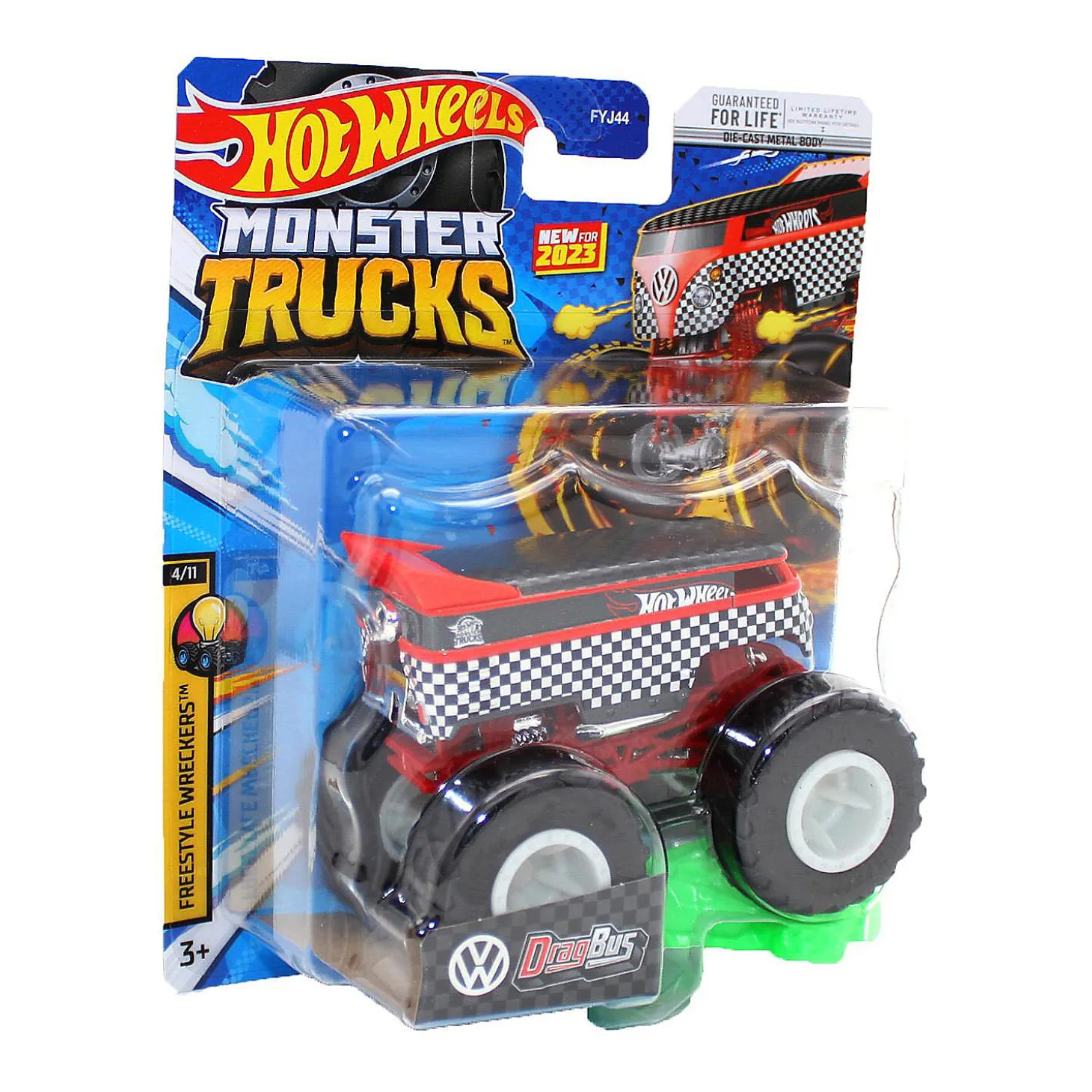 Hot Wheels Monster Trucks 1:64 Scale Dragbus Red, Includes Connect And Crash Car