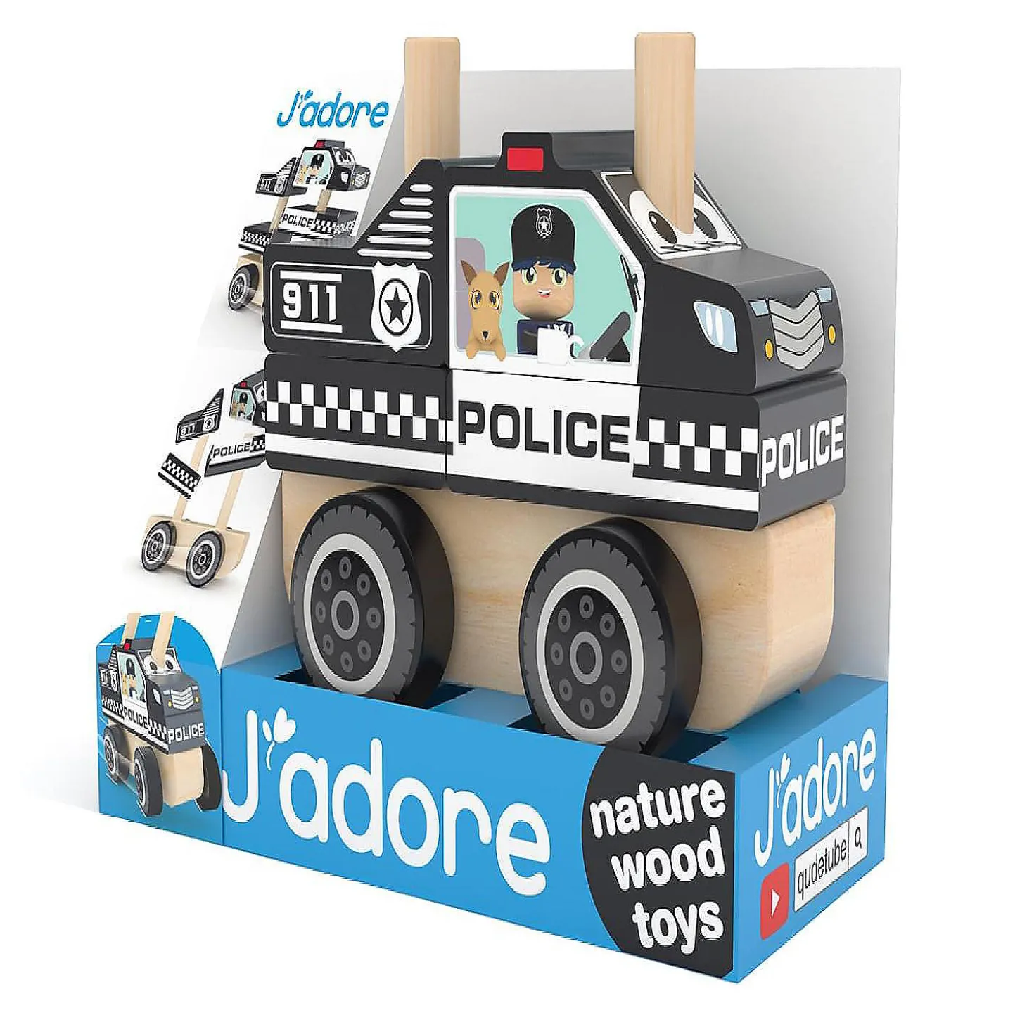 J’Adore Police Car Wooden Stacking Toy