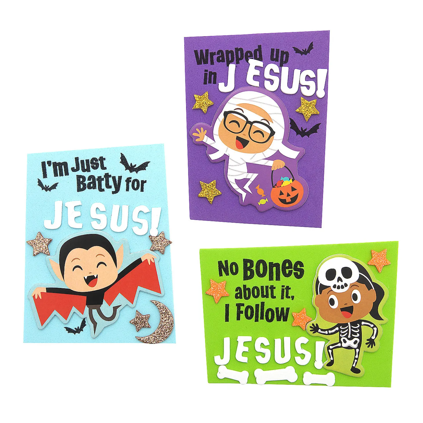 These Little Boolievers Are Batty For Jesus! With Images Of Kids In Costumes And Phrases Like, “No Bones About It, I Follow Jesus,” Kids Will Get A Thrill Out Of Assembling These Charming Magnets. Add This Extra Fun To A Sunday School Halloween Party Or Your Own Halloween Celebration. Includes Self-Adhesive Foam Pieces And Magnets. 3-1/2″ X 4-3/4″ Makes 12. All Craft Kit Pieces Are Pre-Packaged For Individual Use. Kits Include Instructions. Magnets Are Packaged Separately. Do Not Discard. © Otc