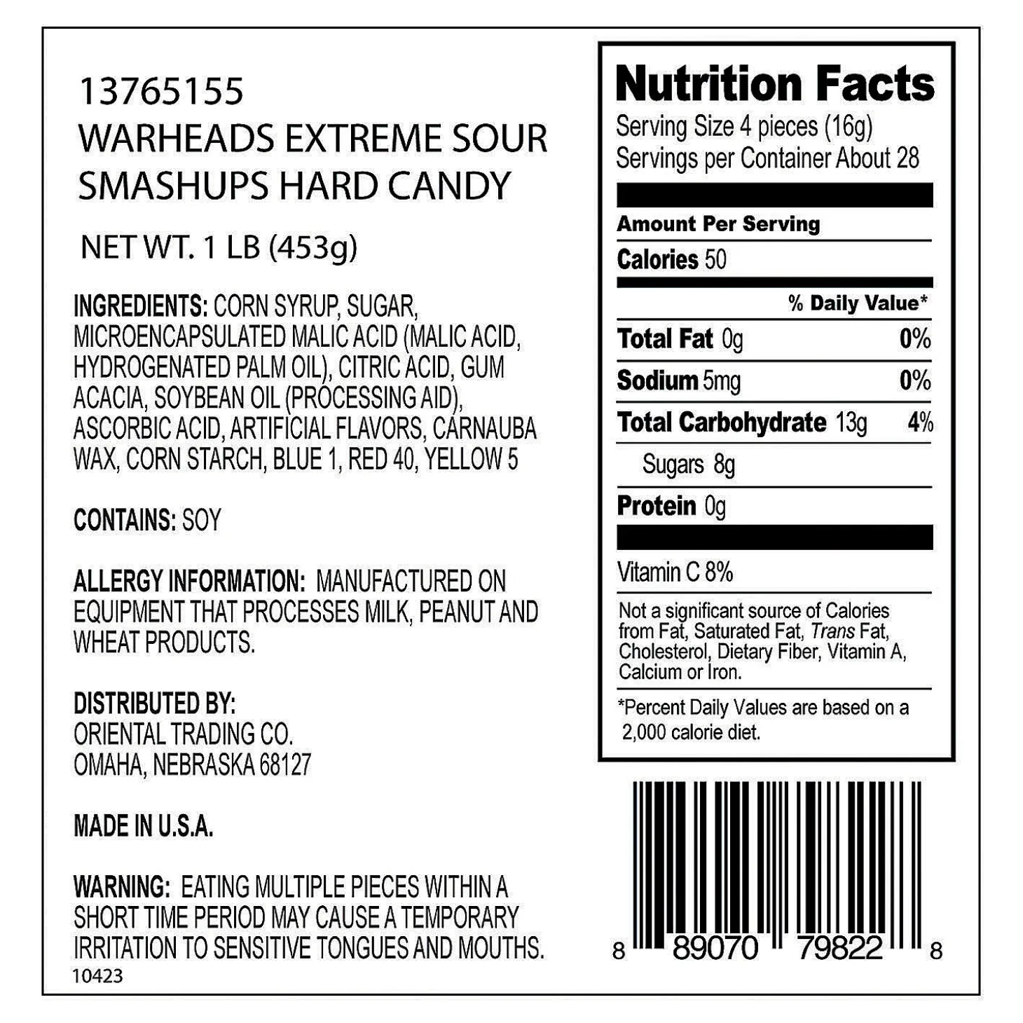 Put A Twist On Candy Buffets And Party Favor Bags When You Add This Fruit-Flavored, Delightfully Sour Classic Candy! Warheads® Are An All-Time Favorite – You May Scrunch Up Your Face, But You’Ll Still Enjoy The Delicious Taste! Assorted Fruit Flavors. Individually Wrapped. Fat-Free. (Approx. 117 Pcs. Per Unit) Total Wt., 1 Lb.• Candy Is Non-Returnable. For More Information, Visit Our “Return Policy” Page Located On Our Website.• Made In The Usa. Important Country Of Origin Information: For Certain Items Sold By Otc On Our Web Or Mobile Sites, Country Of Origin Information Can Change And What Is Displayed May Not Be Accurate Or Consistent With Manufacturer Information. For Up To Date Country Of Origin Information, It Is Recommended That You Rely On Product Packaging Or Other Manufacturer Information.• Ingredient, Nutrition, Allergen And Other Product Information Are Provided On Our Web And Mobile Sites For Reference Purpose Only, Without Warranty Or Representation As To Accuracy. Manufacturers Adjust Their Labeling Regularly And Are Solely Responsible For The Accuracy Of The Information. For General Questions Concerning These Items, Please Contact Our Customer Service At 800-228-0475.