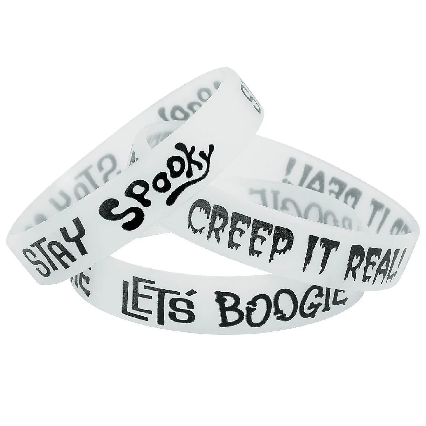 White Glow-In-The-Dark Halloween Rubber Bracelets – 12 Pc.
