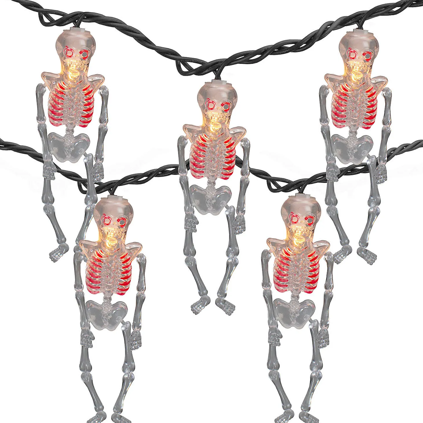 10Ct Skeleton Halloween Lights – 7.5Ft Black Wire
