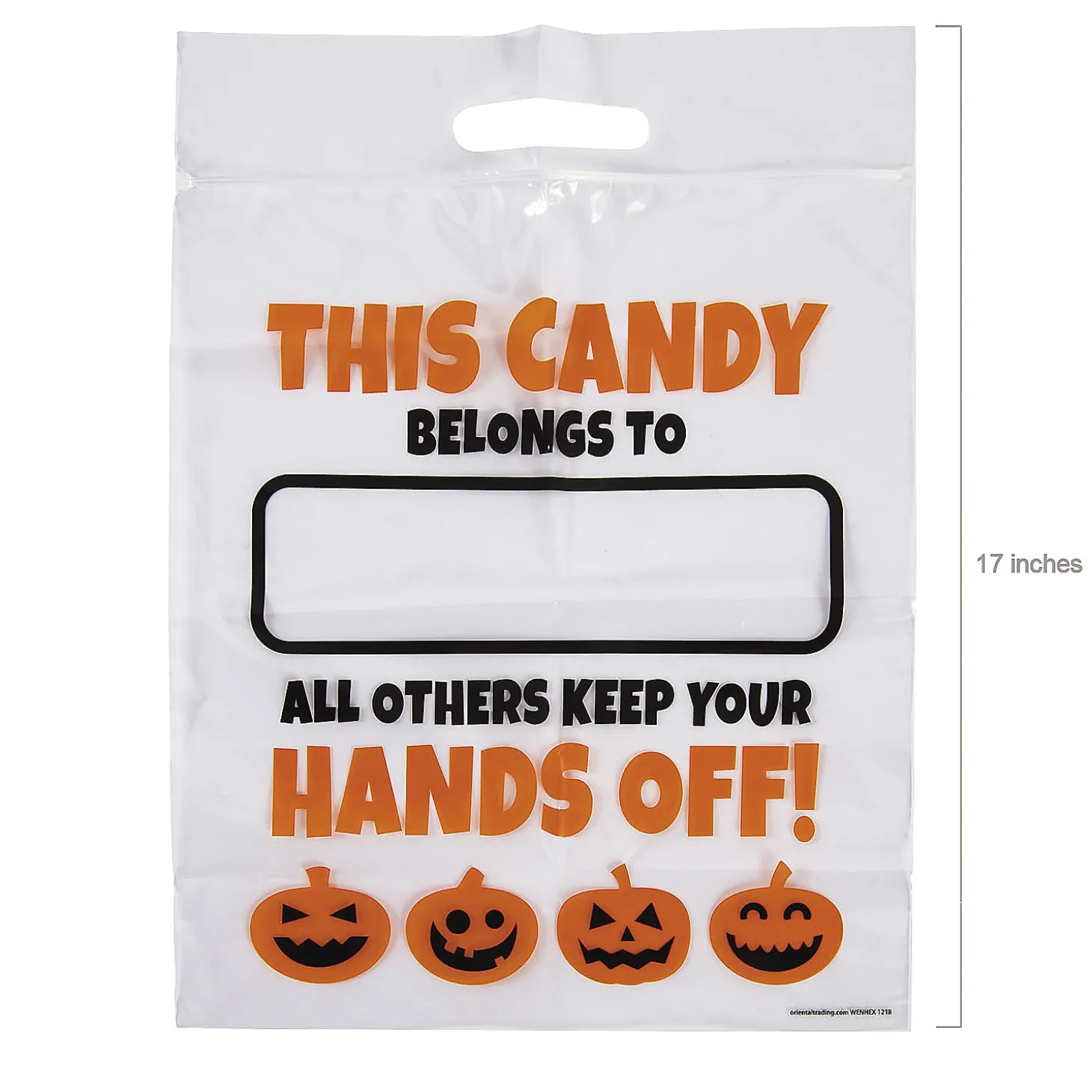 • Perfect Size For Parties: These Treat Bags Are Just The Right Size For Candies. Fill Them Up With Tasty Treats And Hand Them Out As Party Favors At Your Next Birthday Party, Holiday Gathering Or Wedding Reception!• Sweet Style: Display Your Delicious Delights Or Party Favors In Style With These Fun Bags! You Can Make A Decorative Statement At Any Event With These Bags, A Few Treats And Some Stylish Twist Ties.• Travel-Friendly: Once The Party Is Over, Your Guests Will Be Happy To Take Home Your Favorite Cookies, Cake Pops, Cupcakes Or Other Baked Goods In These Easy-To-Carry Bags. Gearing Up For A Halloween Party Or Event? Add These Large Resealable Bags To Your Halloween Supplies! Perfect For Keeping All Of Their Candy In One Place, The Resealable Portion Of The Bag Makes Sure That It Doesn’T Fall Out! Add Their Name In The Box With A Permanent Marker So They Can Tell Theirs Apart From The Others. © Otcsize: 12 1/2″ X 17″Quantity: 50Material: Plastic.