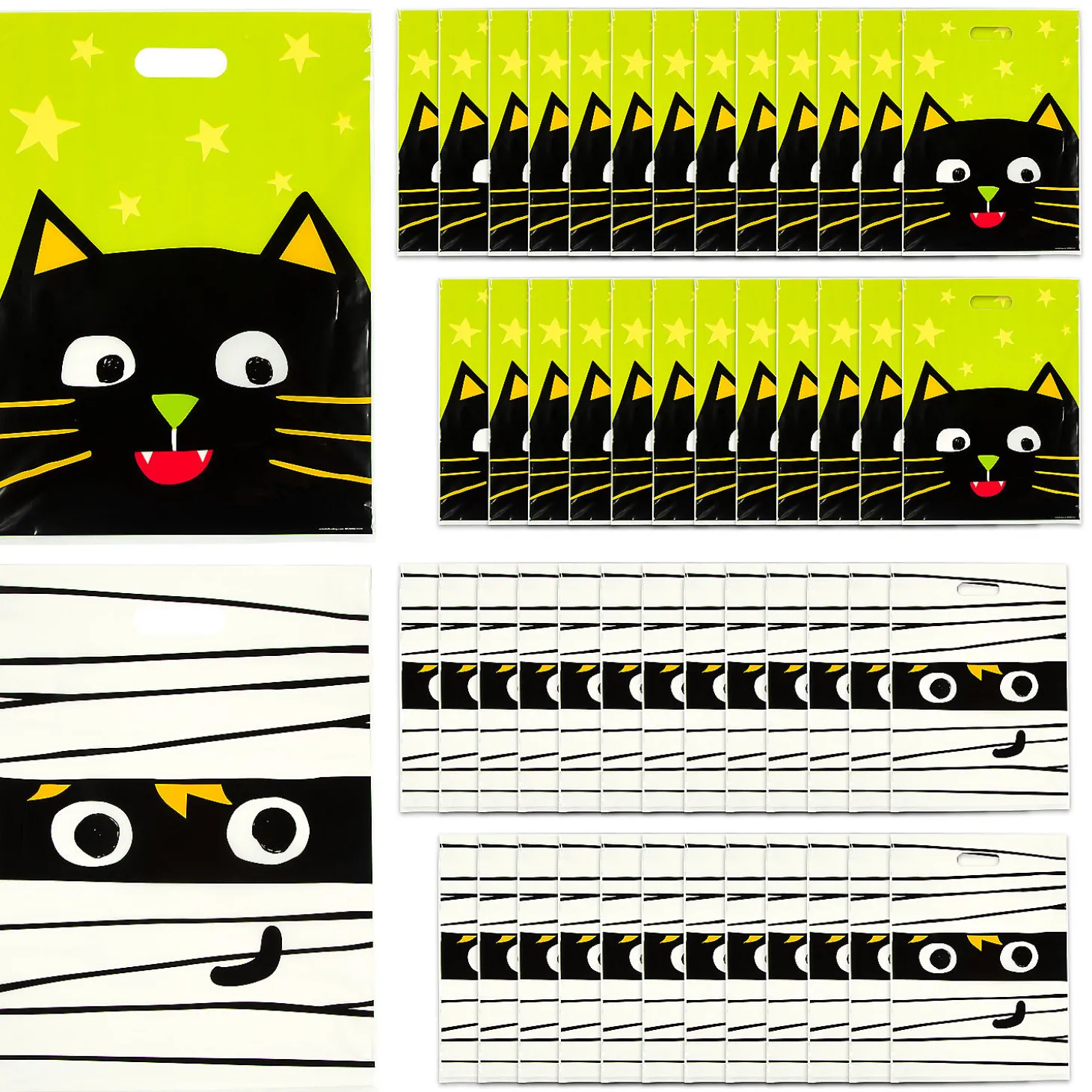 • Travel-Friendly: These Durable, Easy-To-Carry Bags Are Great For Trick-Or-Treating, Trunk-Or-Treating Or Simply Carrying Halloween Party Favors And Candy Home From A Fun Fall Event.• Perfect Size For Parties: These Treat Bags Are Just The Right Size For Candies. Fill Them Up With Tasty Treats And Hand Them Out As Party Favors At Your Next Halloween Party, Fall Store Event Or To Young Trick-Or-Treaters.• Non-Scary Halloween Fun: The Sweetly Smiling Cats And Mummies On These Goody Bags Are More Happy Than Haunting. Hand Them Out To Toddler Trick-Or-Treaters, Or Use Them As Halloween Party Favors For Younger Children.Product Descriptionfear Not! This Ghoul Gang Is More Goofy Than Ghastly! Perfect For Holding Halloween Party Favors, These Goody Bags Come Designed With Adorable Smiley Faces Of A Black Cat And Mummy. Just Fill Them With Toys, Candy And More To Give To Halloween Party Guests Or Trick-Or-Treaters. Plastic. (50 Pcs. Per Unit) 12″ X 17″Size: 12″ X 17″Quantity: 50Material: Plastic