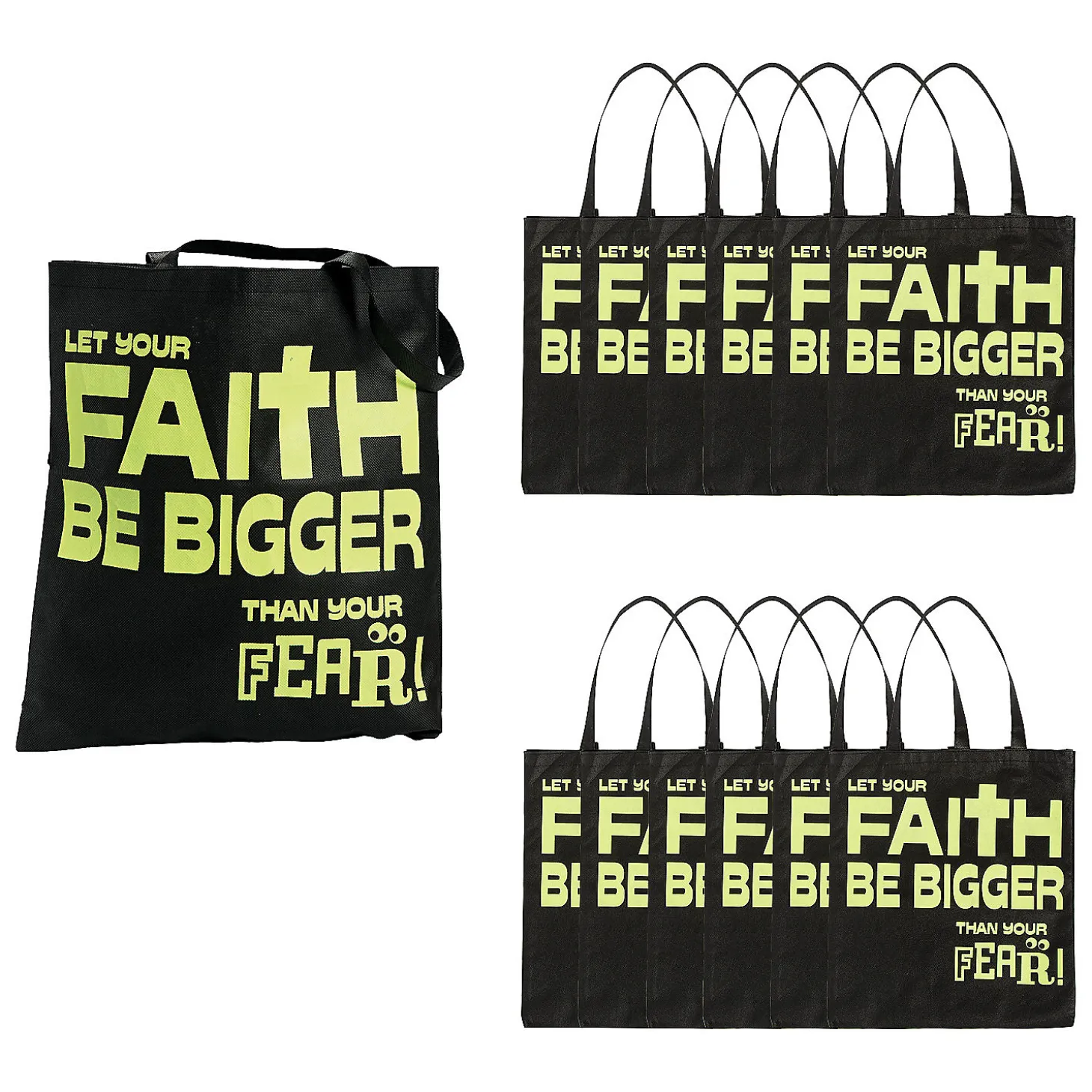 15″ X 17″ Large Nonwoven Glow-In-The-Dark Faith Over Fear Tote Bags – 12 Pc.