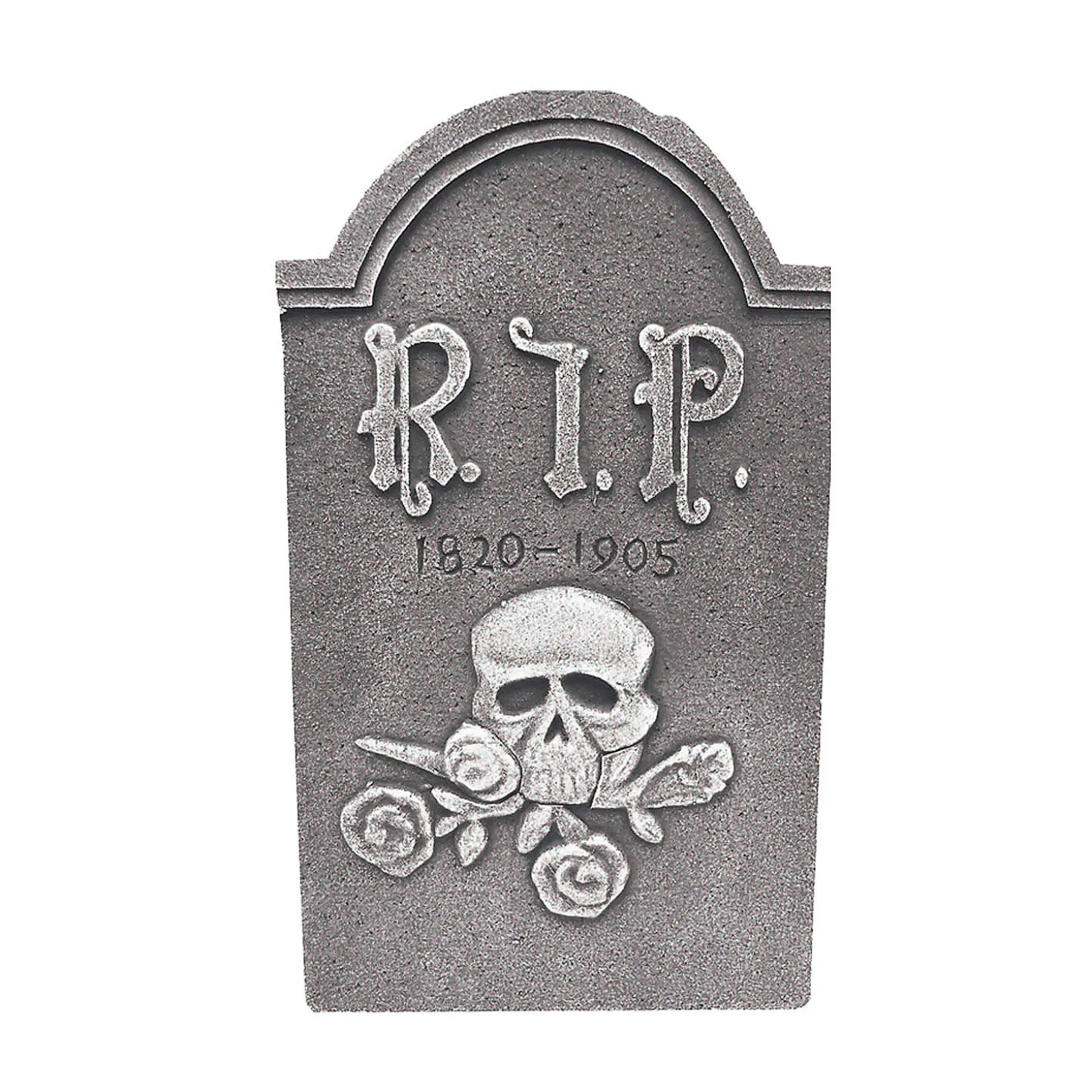 Beef Up Your Graveyard Scene With An Engraved Rip Tombstone. This Thin Styrofoam Tombstone Measures 19 Inches Tall And Features A Distressed Grey Stone Finish With A Rose Design. One Plastic Stake Is Included For Added Stability And Support Making This A Durable Choice For Your Halloween, Haunted House And Graveyard Scene Decorations.