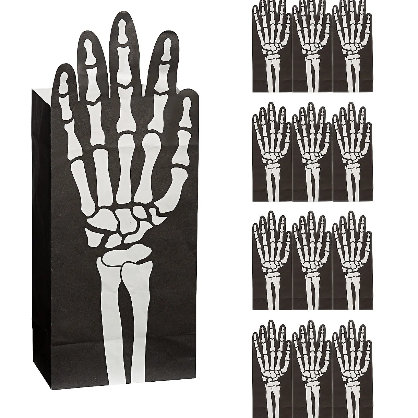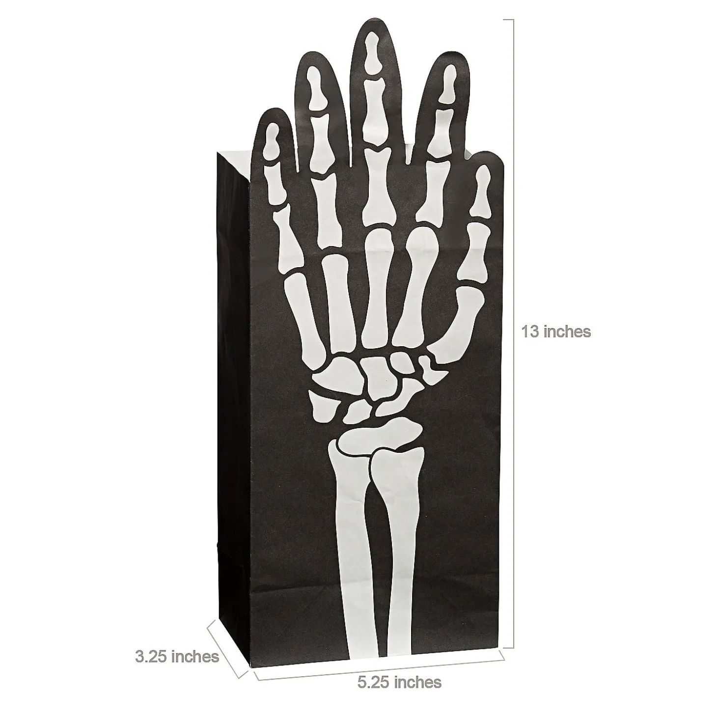 5 1/4″ X 13″ Fold-Over Skeleton Hand Paper Treat Bags – 12 Pc.