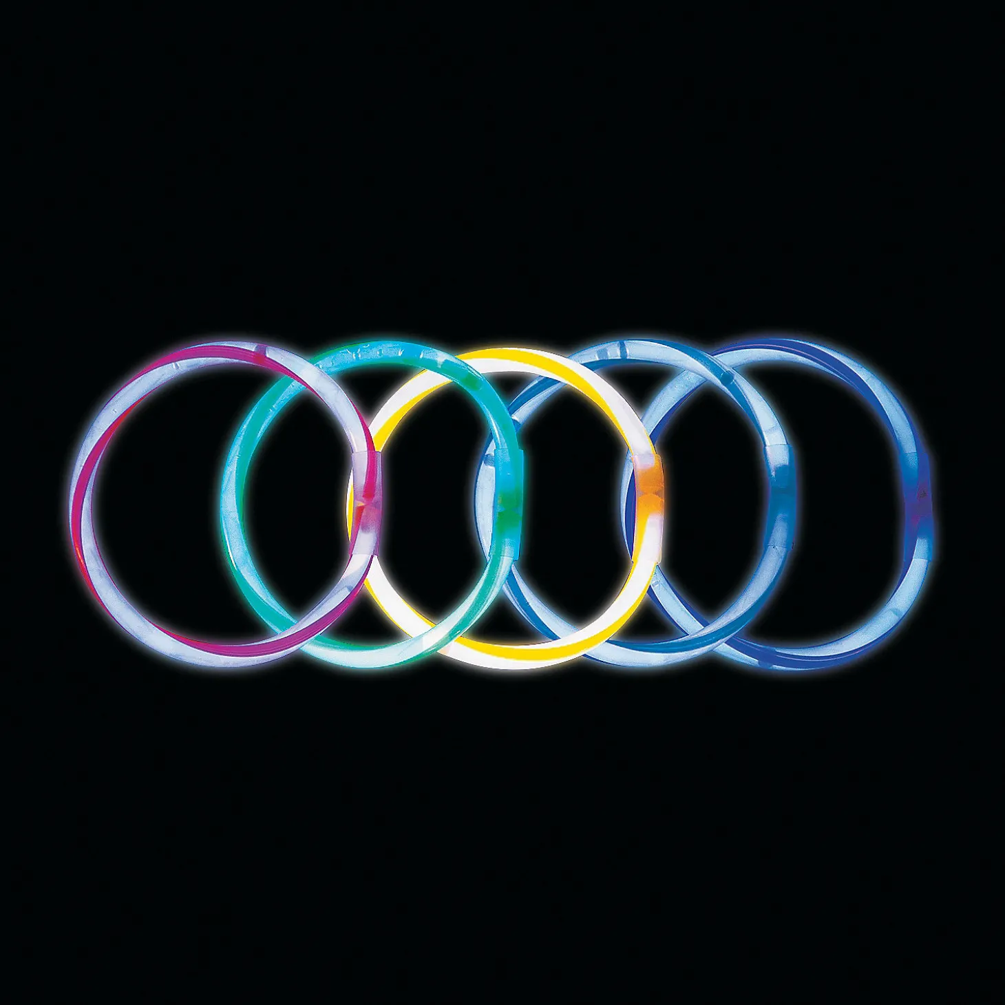 What’s Included: This Bulk Set Includes 100 Plastic Glow Bracelets That Are Each 8″ With 1″ Snap-On Connectors And Come In A Fun Assortment Of Swirled Colors Like Purple, Blue, Green And Yellow. Assortment May Vary. Simple Assembly Required. Light Up Any Event: Kids And Adults Alike Love Stacking These Glow Bracelets, Which Makes Them Great For Leaving On Tables For Your Fun Run Participants Or Guests Of Your New Year’s Eve, Birthday Party Or Any Other Festive Event! They’Re Also Fantastic Candy Alternatives For Halloween.Fantastic Party Favors: Stuff Swag Bags With These Glow Bracelets And Give To Your Bachelorette Or Birthday Party Guests. High Quality: These Swizzle Glow Bracelets Are Made Of Plastic And Fun For Adults And Kids Of All Ages. The Bracelets Have A Breakaway Closure So They’Re Easy To Put On And Take Off. Simply Snap And Shake To Activate The Glow!Glow Up! This Glow Swizzle Bracelet Assortment Is Fun For All Ages. Kids And Adults Will Happily Stack The Bracelets On Their Arms And Celebrate Whatever Party Or Event You’Re Hosting. Specs: Size: Bracelets: 8″, Connectors: 1″, Quantity: 100, Material: Plastic