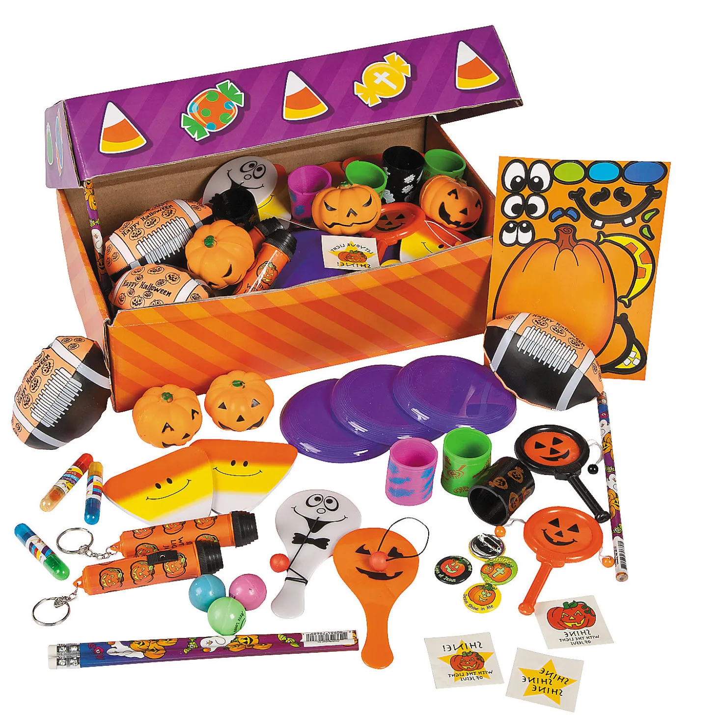Everything You Need For Your Church’s Halloween Party In One Convenient Assortment! This Trove Of Trunk-Or-Treat Treasures Includes An Variety Of Kids’ Toys, Favors And Activities. Youngsters Of All Ages Will Have Hours Of Wholesome Fun Playing With And Trading This Seasonal And Spiritual Selection. Cardboard. (100 Pcs. Per Unit) 12″ X 6″ X 7 1/2″ © Otc• Assortments Are Subject To Change At Any Time And May Vary From Picture Shown. Substituted Items Will Be Similar In Nature.