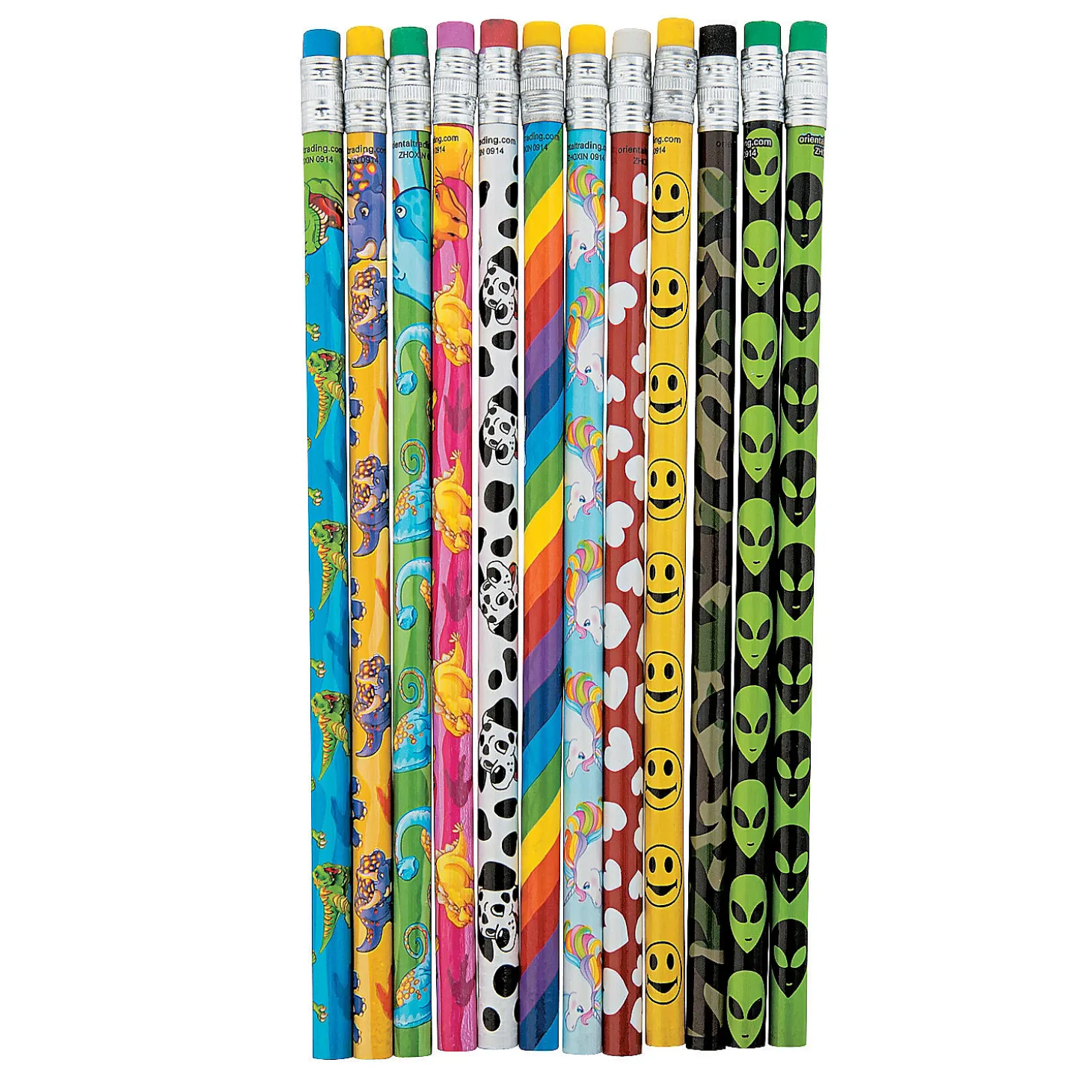 What’s Included: You Get 108 Pencils In A Variety Of Trending Designs, Including Alien Heads, Camo, Rainbow, Unicorns, Dinosaurs And Others! Assortment May Vary. Pencils Measure 7 1/2″. Perfect For Classrooms & More: The Patterns And Colorful Erasers Add Extra Fun To The Pencils, Making Them Great Favors For Birthday Parties, Smart Additions To A Teacher’s Classroom Reward Bin And Fun Alternatives To Giving Out Candy On Halloween.Why We Love It: Bulk Sets And Trending Designs Make These Pencils An Affordable And Fun Choice For Teachers And Parents.Great For All Ages: The Pencils Are Great For Kids And Adults. Not For Children Under 3 Years. With Such A Wide Variety Of Patterns And Colors, This Bulk Pencil Assortment Was Definitely Made For Fun. Specs: Size: 7 1/2″, Quantity: 108, Material: Wood, Brand: © Otc – Oriental Trading Company