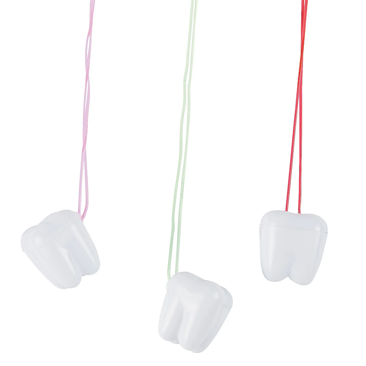 Tooth Saver Necklaces. These Container Necklaces Are A Great Incentive To Get Kids To Go To The Dentist. You Could Also Use These Tooth Charms To Save One Of Your Child’s Baby Teeth. (144 Pcs. Per Unit) Each 3/4″ Plastic Tooth Saver Is On A 20″ – 20 3/4″ Cord.