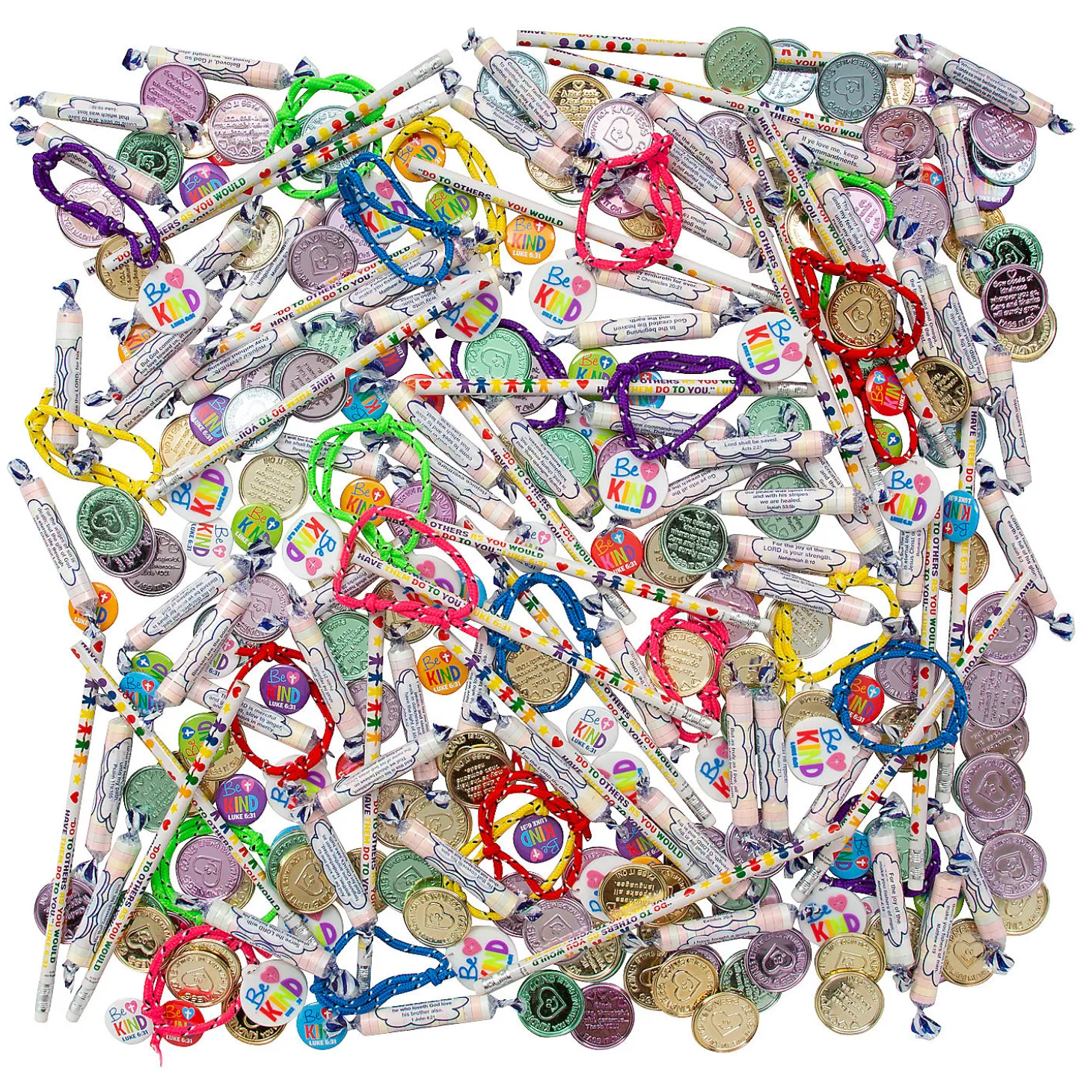 Take Advantage Of A Trunk-Or-Treat Event To Hand Out Treats Of Positivity Instead Of Treats With Scary Halloween Messaging. This Impressive Assortment Includes Scripture Candy And A Variety Of Positive Handouts Like Pencils, Bracelets And More. This Assortment Goes Well With A Be Kind Trunk-Or-Treat Theme, But Also Works Well With Any Other Religious Halloween Theme Or For A Harvest Festival. (288 Pcs. Per Unit) Assortment May Vary. © Otcincludes:• 12 Assorted Nylon Be Kind Friendship Rope Bracelets (Bracelet, Adjustable Up To 13″ Circ.; Charm, 1 1/4″.)• 48 Assorted Metal Be Kind Mini Buttons (1″ Diam.)• 24 Wood Be Kind Religious Pencils (7 1/2″)• 144 Assorted Plastic Kindness Coins (1 1/2″)• 60 Tangy Tarts™ Scripture Candy™ (Each Roll Has 15 Assorted Flavor Candy Pieces In A Bible Verse Wrapper. Made In The Usa, Important Country Of Origin Information: For Certain Items Sold By Otc On Our Web Or Mobile Sites, Country Of Origin Information Can Change And What Is Displayed May Not Be Accurate Or Consistent With Manufacturer Information. For Up To Date Country Of Origin Information, It Is Recommended That You Rely On Product Packaging Or Other Manufacturer Information. Ingredient, Nutrition, Allergen And Other Product Information Are Provided On Our Web And Mobile Sites For Reference Purpose Only, Without Warranty Or Representation As To Accuracy. Manufacturers Adjust Their Labeling Regularly And Are Solely Responsible For The Accuracy Of The Information. For General Questions Concerning These Items, Please Contact Our Customer Service At 800-228-0475.)