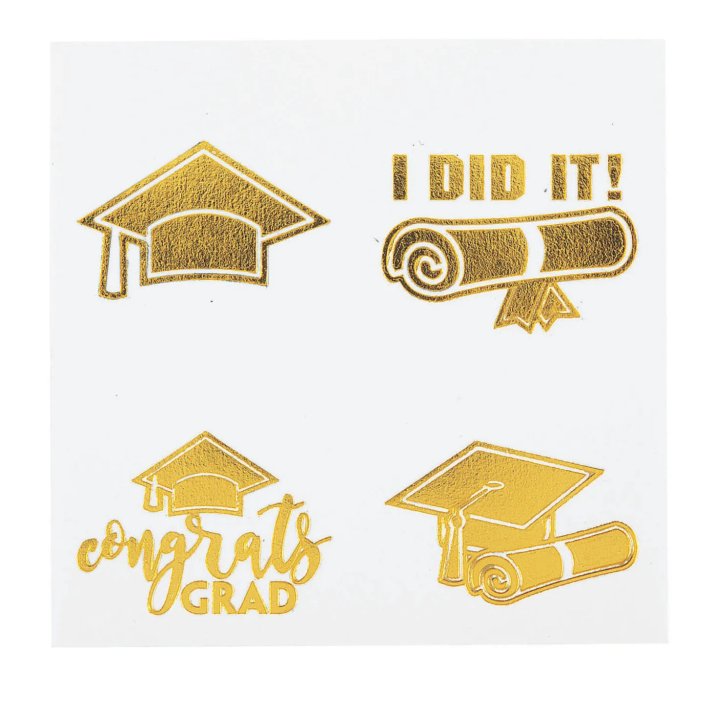 Bulk 72 Pc. Gold Graduation Temporary Tattoos