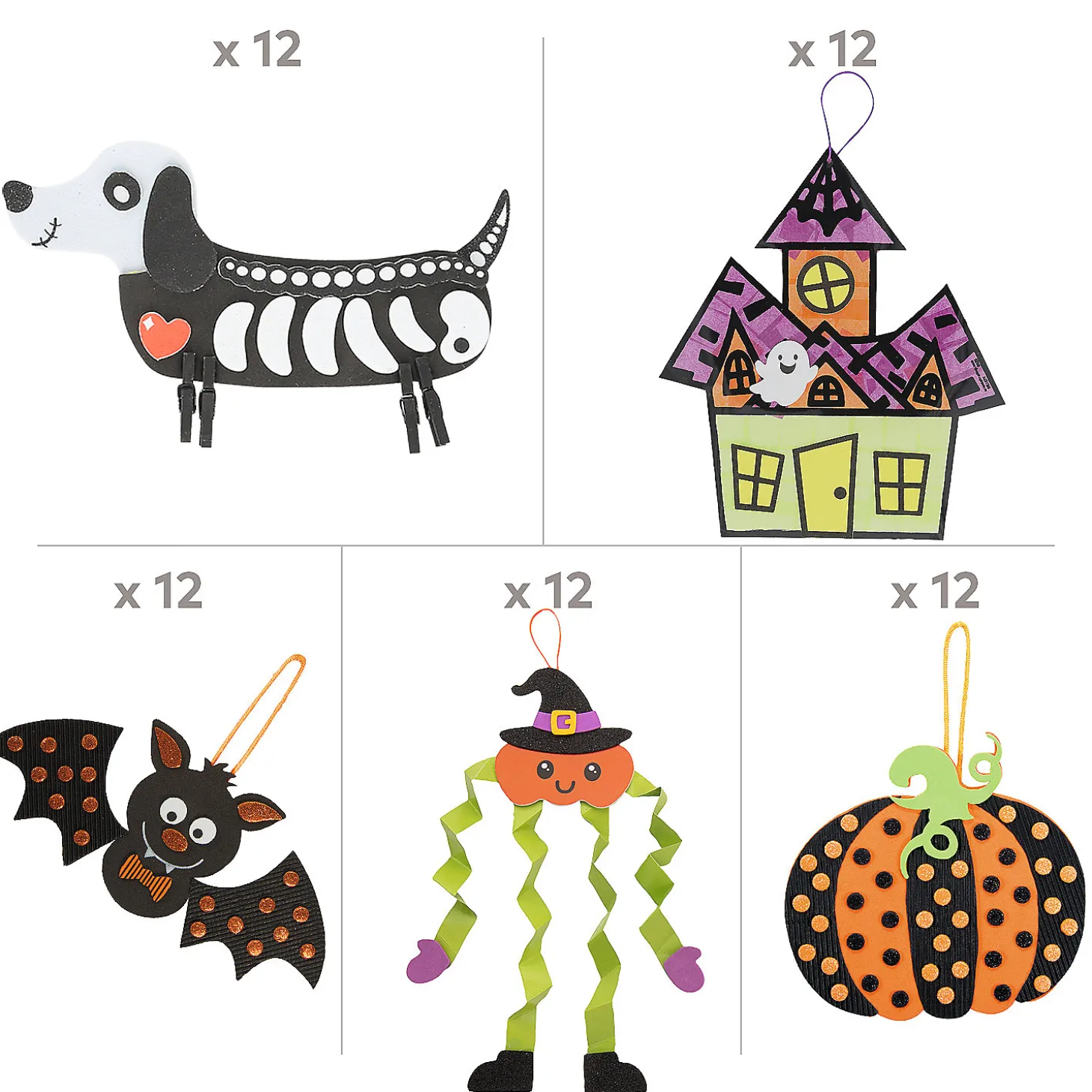 This Kit Is A Not-So-Spooky Concoction Of Halloween Fun And Is Perfect As Halloween Party Activities! Little And Big Monsters Will Have A Blast Assembling These Crafts That Can Be Used As Decorations In The Classroom Or At Home. From Coloring Your Own Halloween Character To Stitching A Witch’s Hat, There’s Something For Everyone In This Kit! (60 Pcs. Per Unit) All Craft Kit Pieces Are Pre-Packaged For Individual Use. Kits Include Instructions. Includes:• 12 Polka Dot Bat Ornament Craft Kits (Includes Self-Adhesive Foam Pieces And Satin Cord For Hanging. 8″ X 3 1/2″)• 12 Hanging Skeleton Parrot Craft Kits (Includes Self-Adhesive Foam Pieces, Paper Straws, Plastic Googly Eyes And Satin Cording. 4 3/4″ X 6″)• 12 Legend Of The Jack-O’-Lantern Craft Kits (Includes Self-Adhesive Foam Pieces, Cardstock Cards And Satin Cording. 4″ X 3 3/4″)• 12 Polka Dot Pumpkin Ornament Craft Kits (Each Kit Includes Self-Adhesive Foam Pieces, Glitter Dots, And A Satin Cord. 5 1/2″ X 5″)• 12 Halloween Witch Ornament Craft Kits (Includes Self-Adhesive Foam Pieces, Paper Baking Cups And Satin Cording. 3 1/4″ X 5″)• Assortments Are Subject To Change At Any Time And May Vary From Picture Shown. Substituted Items Will Be Similar In Nature.