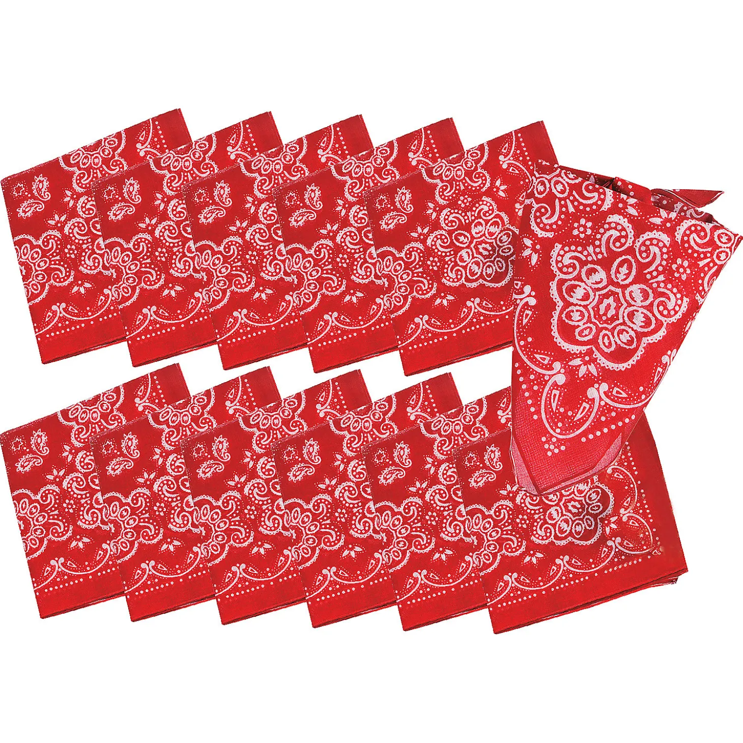 • Let’s Cosplay: Liven Up Everyone’s Wild West Get-Up With This Set Of 12 Classic Red Bandanas. • Great Design: Each Handkerchief Is 20″ Square, Which Is Big Enough To Use As A Hat Or Neck Bandana Or As Party Decorations. • Excellent Quality: These Polyester Bandanas May Be Hand Or Machine Washed And Air Dried. Use A Cool Iron If Needed.• Fun For Any Event: Wear The Bandanas To Western Parties Or Use As Party Favors At Cowboy-Themed Corporate Or Social Events.Product Description: Yee Haw! When You Need To Rustle Up Some Easy Western Wear Or Fun Wild West Party Decorations, Lasso These Red Bandanas. The Set Includes A Dozen Classic Red And White Handkerchiefs That Can Be Tied Around Your Neck, A Hat Or Used As Party Decor. They’Re Also Perfect To Give Out To Every Cowboy, Cowgirl Or Rodeo Star Who Attends Your Western Party.Size: 20″ Squarequantity: 12Material: Polyester
