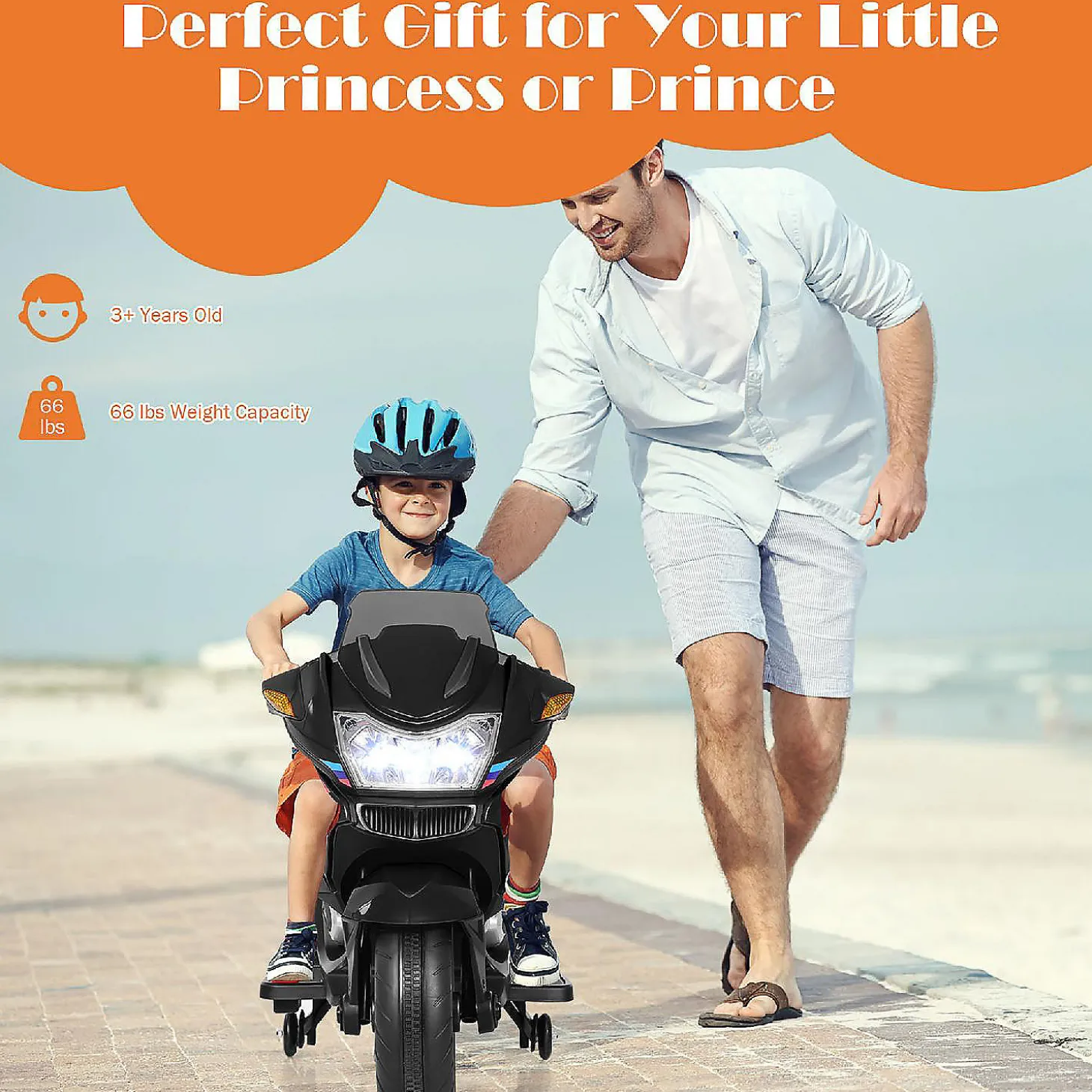 Costway 12V Kids Ride On Motorcycle Electric Motor Bike W/ Training Wheels & Light Black