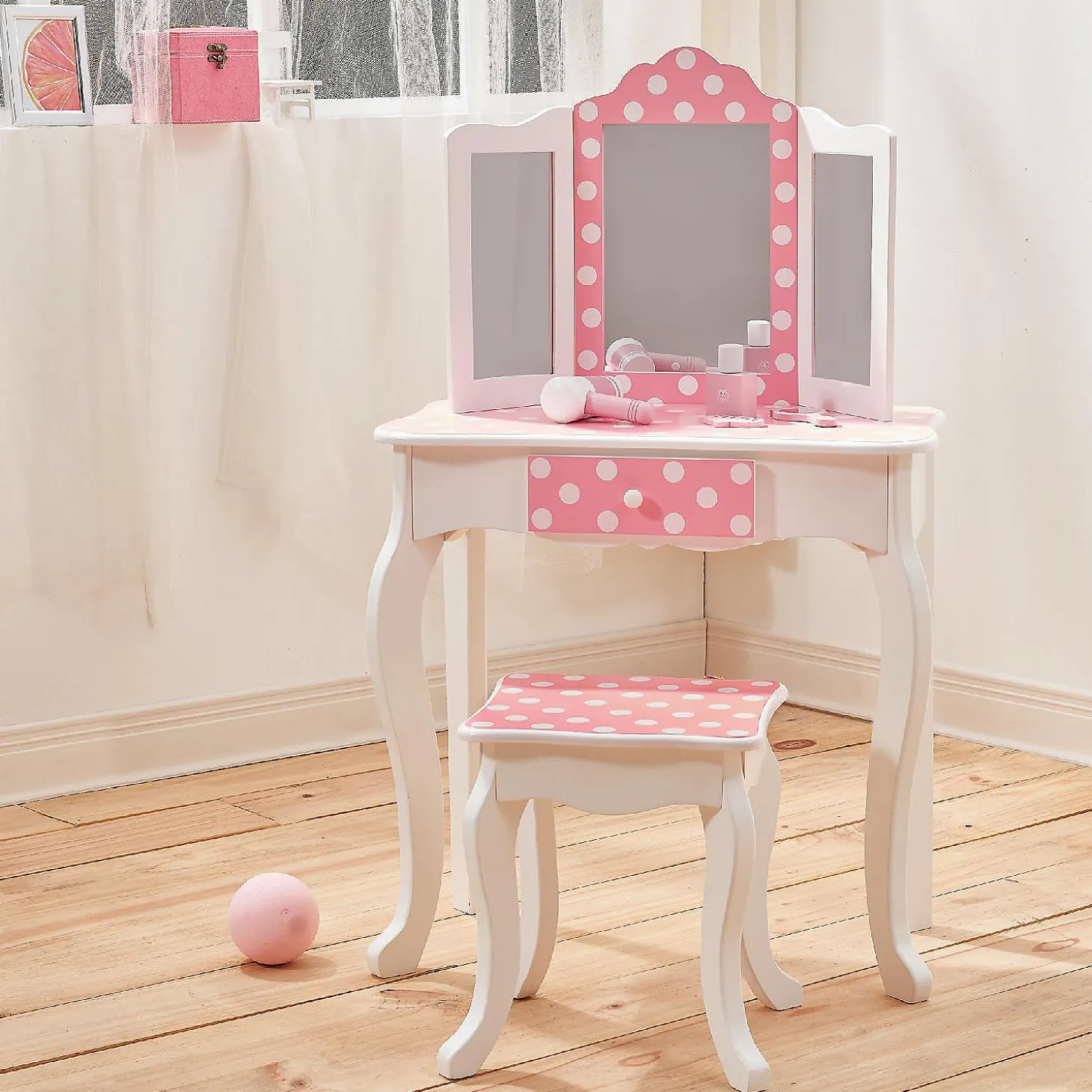 Fantasy Fields – Fashion Polka Dot Prints Gisele Play Vanity Set – Pink / White