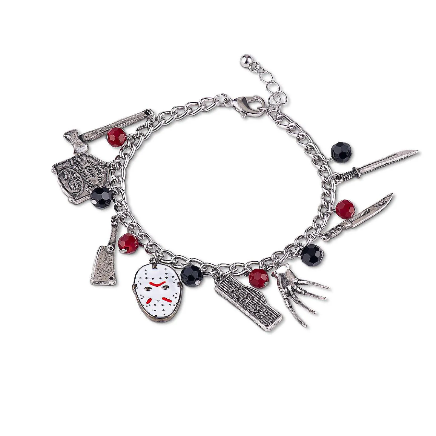 Freddy Vs. Jason 15Mm Enamel Charm Silver Finish Chain Bracelet Novelty Jewelry