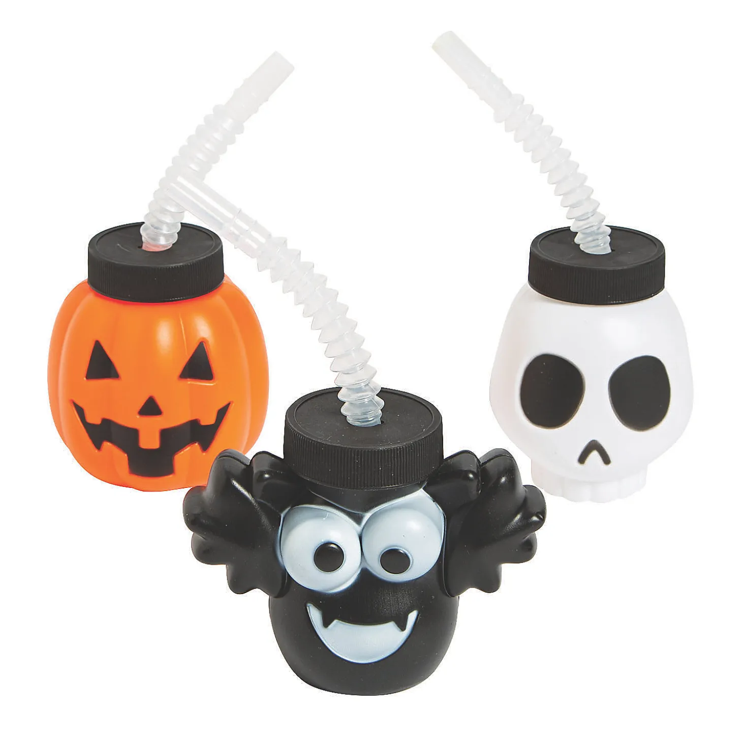 Halloween Character Bpa-Free Plastic Cups With Lids & Straws – 12 Ct.