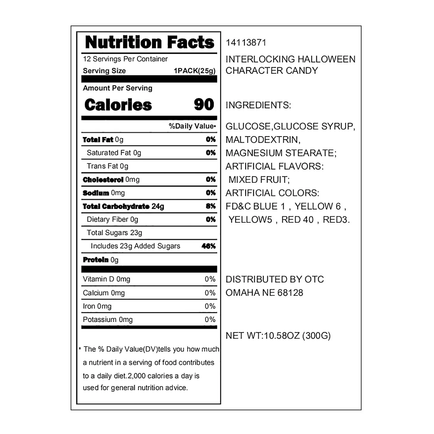 • Game Prizes: Make Your Halloween Party Even More Exciting By Offering Candy And Other Treats As Prizes For Thrilling Games Such As A Candy Scavenger Hunt Or A Ghoulish Guessing Game.• Goody Bag Fillers: Add A Sweet Surprise To Your Halloween Party Goody Bags By Stuffing Them With Pieces Of Candy Or Other Edible Goodies, Ensuring That Each Guest Leaves With A Delightful Treat To Enjoy Later.• Tasty Options For Trunk-Or-Treat: Find 1000S Of Delectable Candy And Treat Options On Our Website To Fill Up Your Handout Buckets And Delight Kids Of All Ages.Product Description:Assemble A Very Ghouled Trick-Or-Treat Or Trunk-Or-Treat Candy Assortment With Individually Wrapped Interlocking Candy Fun Packs Featuring Ghosts, Bats And Spiders… Oh My! These Fun, Fruit-Flavored Halloween Candies Are Dastardly Delightful As Class Halloween Party Treats Or Hayrack Ride Handouts. Fat-Free. © Otc.• Edibles Are Non-Returnable. For More Information, Visit Our “Return Policy” Page Located On Our Website.• Made In The Usa, Important Country Of Origin Information: For Certain Items Sold By Oriental Trading On Our Web Or Mobile Sites, Country Of Origin Information Can Change And What Is Displayed May Not Be Accurate Or Consistent With Manufacturer Information. For Up To Date Country Of Origin Information, It Is Recommended That You Rely On Product Packaging Or Other Manufacturer Information.• Ingredient, Nutrition, Allergen And Other Product Information Are Provided On Our Web And Mobile Sites For Reference Purpose Only, Without Warranty Or Representation As To Accuracy. Manufacturers Adjust Their Labeling Regularly And Are Solely Responsible For The Accuracy Of The Information. For General Questions Concerning These Items, Please Contact Our Customer Service At 800-228-0475. Size: Total Wt., 1 Lb.Quantity: Approx. 8 Pcs. Per Pkg./12 Pkgs. Per Unitassorted Fruit Flavors.