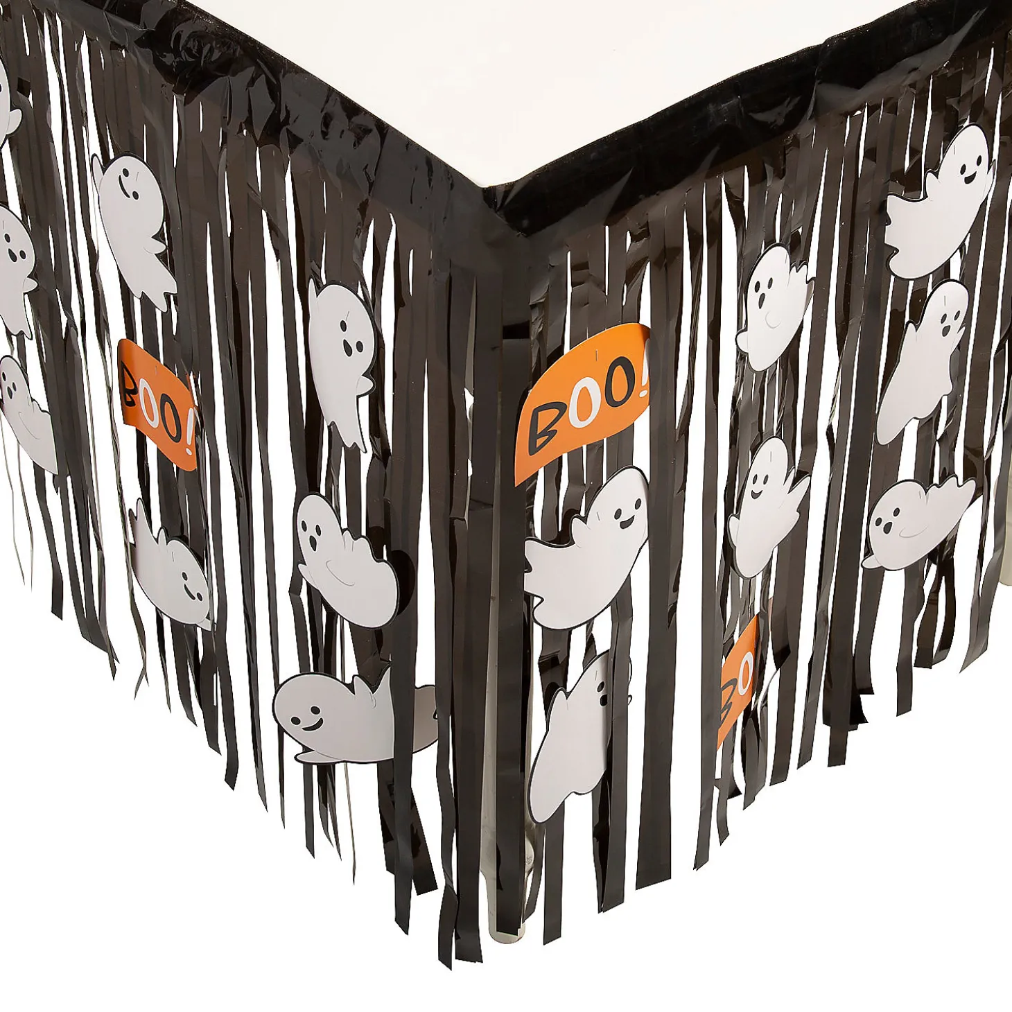 Add This Not-So-Spooky Decoration To Your Next Halloween Party! This Table Skirt Features An Assortment Of Adorable Ghost Cutouts That Float In And Out Of The Fringe And Whisper Boo. Drape It Over The Snack Table At Home Or Use It In The Classroom For A Little Festive Flair. Plastic. 9 Ft. X 29″