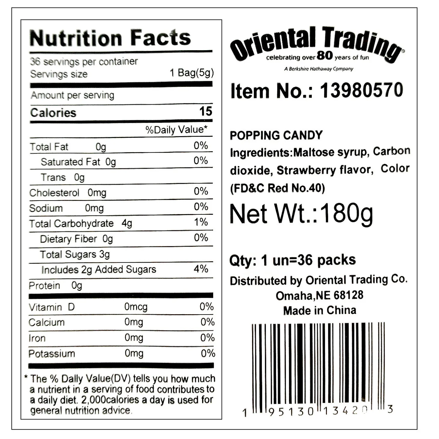 • Spooktacular Candy Buffet: Create A Spine-Chilling Candy Buffet With Our Vast Selection Of Sweets, Offering A Variety Of Flavors, Colors, And Textures That Will Leave Your Guests In Awe.• Game Prizes: Make Your Halloween Party Even More Exciting By Offering Candy And Other Treats As Prizes For Thrilling Games Such As A Candy Scavenger Hunt Or A Ghoulish Guessing Game.• Tasty Options For Trunk-Or-Treat: Find 1000S Of Delectable Candy And Treat Options On Our Website To Fill Up Your Handout Buckets And Delight Kids Of All Ages.Product Description:Pop Off Your Halloween Party With These Tasty Party Favors! Also Great As Unique Trick-Or-Treat Handouts Or Costume Contest Prizes, These Candy Packets Come With Stickers That Feature A Variety Of Smiling Jack-O’-Lanterns All The Little Boos And Ghouls Are Sure To Love. Simple Assembly Required To Apply Sticker. © Otc• Candy Is Non-Returnable. For More Information, Visit Our “Return Policy” Page Located On Our Website. • Ingredient, Nutrition, Allergen And Other Product Information Are Provided On Our Web And Mobile Sites For Reference Purpose Only, Without Warranty Or Representation As To Accuracy. Manufacturers Adjust Their Labeling Regularly And Are Solely Responsible For The Accuracy Of The Information. For General Questions Concerning These Items, Please Contact Our Customer Service At 800-228-0475.Size: Bags, 2 3/4″ X 3 3/4″; Stickers, 2 3/4″ X 2″. Total Wt., 1 Lb.Quantity: 36Strawberry Flavor.