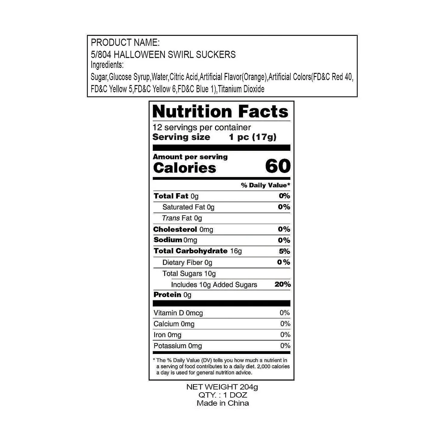 • Spooktacular Candy Buffet: Create A Spine-Chilling Candy Buffet With Our Vast Selection Of Sweets, Offering A Variety Of Flavors, Colors, And Textures That Will Leave Your Guests In Awe.• Bewitching Cake Toppers: Decorate Your Halloween-Themed Cakes And Cupcakes With Our Candy Selections, Transforming Them Into Edible Masterpieces That Will Impress Both Young And Old Alike.• Scary Snack Attack: Fill Up Your Halloween Treat Bowls With Our Delicious Candy Or Treat Options, Delighting Trick-Or-Treaters And Party Guests With A Tempting Assortment Of Goodies.Product Description:Halloween Swirl Suckers. Twisted With Sinister Black, Each Of These 2″ Orange-Colored, Orange-Flavored Lollipops Is On A 3 1/2″ Plastic Stick. Perfect For Peeking Out Of Goody Bags Or Impressing A Ghoulish Trick-Or-Treater, They’Re A Fun Way To Top Off Cupcakes, Too. Individually Wrapped. Fat-Free. • Candy Is Non-Returnable. For More Information, Visit Our “Return Policy” Page Located On Our Website. • Ingredient, Nutrition, Allergen And Other Product Information Are Provided On Our Web And Mobile Sites For Reference Purpose Only, Without Warranty Or Representation As To Accuracy. Manufacturers Adjust Their Labeling Regularly And Are Solely Responsible For The Accuracy Of The Information. For General Questions Concerning These Items, Please Contact Our Customer Service At 800-228-0475.Size: Each 2″ Lollipop Is On A 3 1/2″ Plastic Stick. Total Wt., 7 Oz.Quantity: 12Orange Flavor.