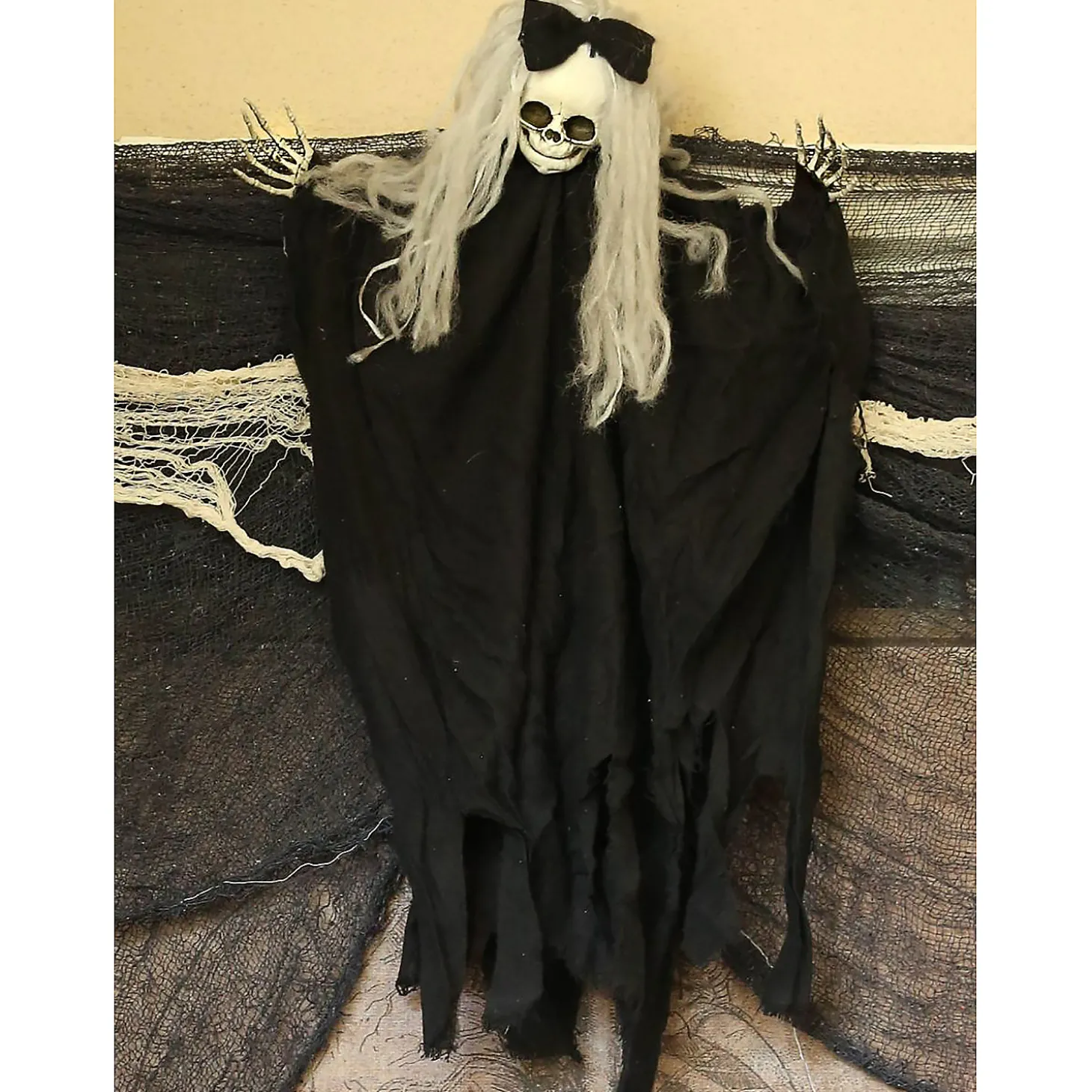 The Creepy Little Puckered Face Of This Doll Is Sure To Unsettle Guests And Anyone Who Takes A Look. Long Dry Weathered Hair Is Centered Around A Big Black Bow That Adornes The Top Of Its Head. Its Abnormally Large Forehead Gives An Offputting Feel. Long Twig Like Fingers Extend From Decrepit Hands That Reach Out Toward You Eerily! Dont Miss Out On This Unique Find For This Season!