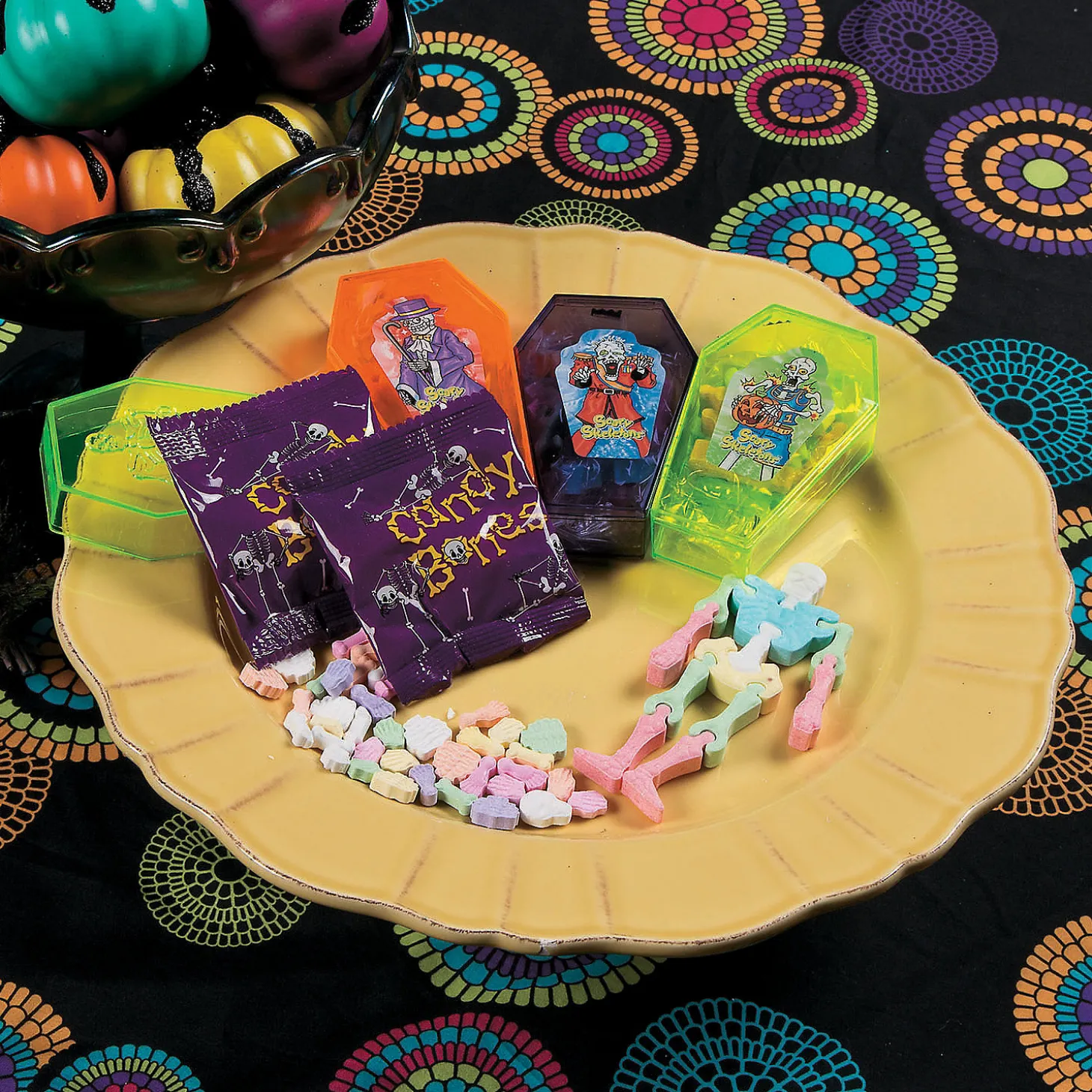 • Goody Bag Fillers: Add A Sweet Surprise To Your Halloween Party Goody Bags By Stuffing Them With Pieces Of Candy Or Other Edible Goodies, Ensuring That Each Guest Leaves With A Delightful Treat To Enjoy Later.• Creative Candy Crafting: Let Your Creativity Run Wild By Using Our Candies As Unique Craft Supplies, Creating Edible Jewelry, Colorful Mosaics, Or Whimsical Scenes That Will Amaze Your Guests.• Tasty Options For Trunk-Or-Treat: Find 1000S Of Delectable Candy And Treat Options On Our Website To Fill Up Your Handout Buckets And Delight Kids Of All Ages.Product Description:Trick Or Treat — These Candies Can’T Be Beat! These Packs Let Kids Have Fun Playing With Their Food On Halloween. Find Even More Fun Halloween Candy Online! Fat-Free. • Candy Is Non-Returnable. For More Information, Visit Our “Return Policy” Page Located On Our Website.• Ingredient, Nutrition, Allergen And Other Product Information Are Provided On Our Web And Mobile Sites For Reference Purpose Only, Without Warranty Or Representation As To Accuracy. Manufacturers Adjust Their Labeling Regularly And Are Solely Responsible For The Accuracy Of The Information. For General Questions Concerning These Items, Please Contact Our Customer Service At 800-228-0475.Size: Each 4″ Plastic Coffin Contains Interlocking Bones That Connect To Build One 4 1/2″ Candy Skeleton. Total Wt., 11 Oz.Quantity: Approx. 12 Pcs. Per Pack/12 Packs Per Unitassorted Fruit Flavors.