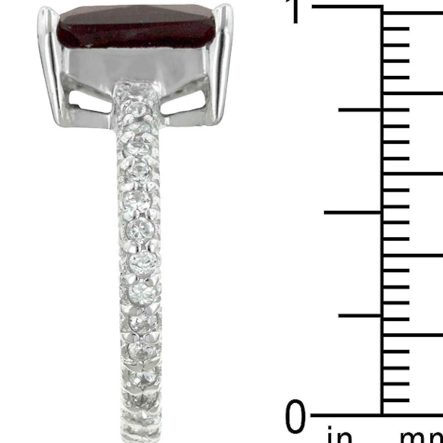Genuine Rhodium Plated To .925 Sterling Silver Radiant Cut Engagement Ring With Radiant Cut Ruby Red Cubic Zirconia Resting On Clear Cubic Zirconia Accented Band Polished Into A Lustrous Silvertone Finish. This Ring Features One Of The Biggest Radiant Cut Stones We Have In Our Collection. And Fashioned With Sterling Silver It’s A Must-Have. Our Genuine Rhodium Finish Is Achieved Using An Electroplating Process That Coats The Item With Heavy Layers Of Rhodium A Close Cousin Of Platinum That Costs Three Times As Much Which Gives Our Jewelry A Platinum Luster.Basemetal: 0.925 Sterling Silver. Style: Engagement, Anniversary.Materials: Cubic Zirconia. Setting Type: Prongs.Plating Color: Silvertone Finish.Audience: Women. Stone Cut: Radiant, Round.Country Of Origin: China.