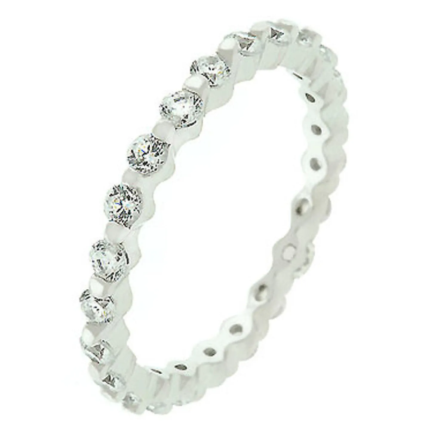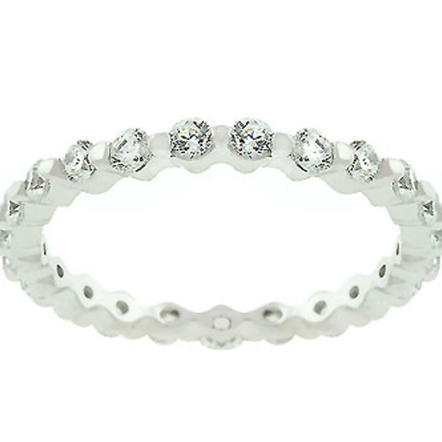 Genuine Rhodium Plated To .925 Sterling Silver Base Eternity Band With Prong Set Round Cut Cubic Zirconia Polished Into A Lustrous Silvertone Finish. Have Everyone Talking When You Show Up In This .925 Sterling Silver Eternity Band. Our Genuine Rhodium Finish Is Achieved Using An Electroplating Process That Coats The Item With Heavy Layers Of Rhodium A Close Cousin Of Platinum That Costs Three Times As Much Which Gives Our Jewelry A Platinum Luster.Basemetal: 0.925 Sterling Silver. Style: Anniversary, Classic, Contemporary, Engagement, Eternity, Right-Hand, Wedding.Materials: Cubic Zirconia. Setting Type: Prongs.Plating Color: Silvertone Finish.Audience: Women.Country Of Origin: China.