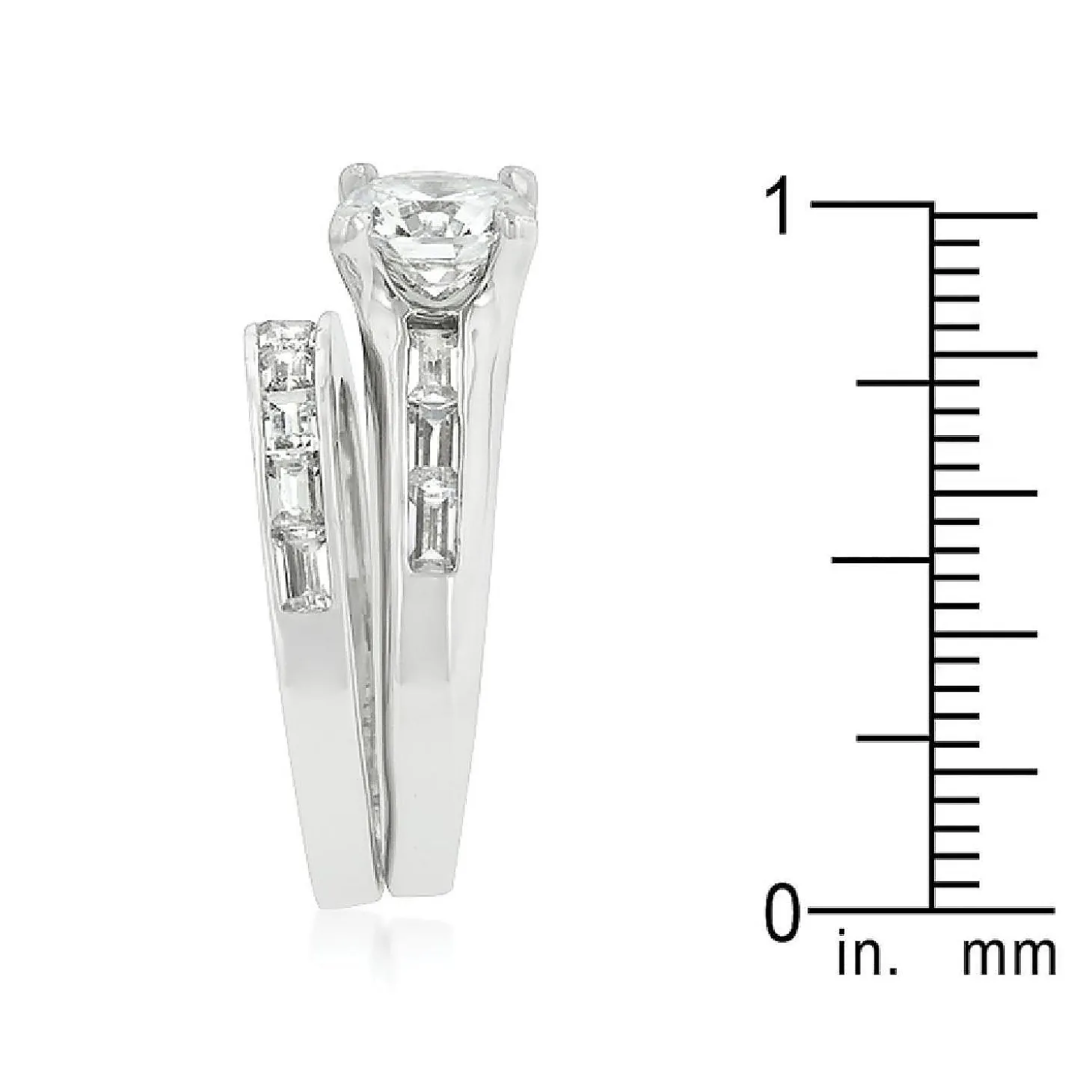 Genuine Rhodium Plated Stackable Ring Set With Round Cut Clear Cubic Zirconia And Emerald Cut Clear Cubic Zirconia Polished Into A Lustrous Silvertone Finish. The Silvertone Stackable Ring Set Features A Set Of Baguette Accented Bands With A Wondrous Clear Cubic Zirconia Center. Our Genuine Rhodium Finish Is Achieved Using An Electroplating Process That Coats The Item With Heavy Layers Of Rhodium A Close Cousin Of Platinum That Costs Three Times As Much Which Gives Our Jewelry A Platinum Luster.Plating Color: Silvertone Finish. Materials: Cubic Zirconia.Base Material: Lead Free Alloy (Brass). Carat Weight: 2.41 (Ct).Stone Cut: Round, Emerald. Ring Band Width: 5 Mmsize: 20 Mm L X 7 Mm W X 7 Mm H, Color: Clear.Stone Size: 7 Mmx 3 Mm X 1.6 Mm