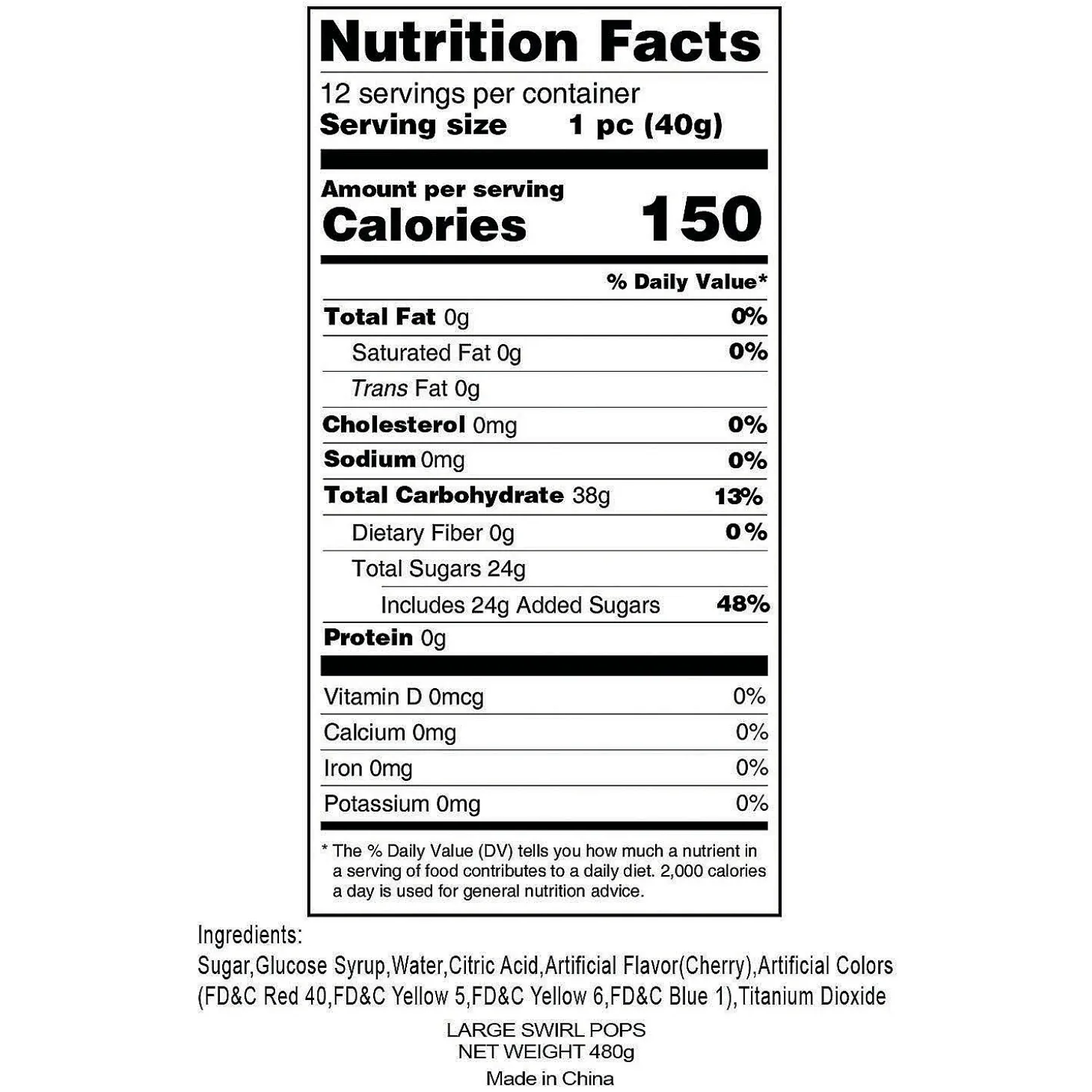 • What’s Included: You Get 12 Large, Individually Wrapped Rainbow Swirl Lollipops In Cherry Flavor. • Non-Returnable: Candy Is Non-Returnable. For More Information, Visit The Return Policy Page Located On Our Website.• Important Country Of Origin Information: For Certain Items Sold By Otc On Our Web Or Mobile Sites, Country Of Origin Information Can Change And What Is Displayed May Not Be Accurate Or Consistent With Manufacturer Information. For Up To Date Country Of Origin Information, It Is Recommended That You Rely On Product Packaging Or Other Manufacturer Information.• Product Information: These Swirled Lollipops Are Fat-Free. Details About Ingredients, Nutrition, Allergens And Other Product Information Are Provided On Our Web And Mobile Sites For Reference Purpose Only, Without Warranty Or Representation As To Accuracy. Manufacturers Adjust Their Labeling Regularly And Are Solely Responsible For The Accuracy Of The Information. For General Questions Concerning These Items, Please Contact Our Customer Service At 800-228-0475.Product Description: Sweet Nostalgia! Bright Rainbow Colors Give These Large Swirl Lollipops Their Old Fashioned Charm. While The Cherry Flavor Is Tasty, These Lollipops Are Big On Style. They’Ll Draw Everyone’s Eye When You Use Them As Sweet Decorations In Glass Jars On The Candy Buffet At Your Wedding Reception, Carnival Birthday Party Or Circus-Themed Corporate Event. You Get A Dozen Individually Wrapped Large Lollipops On Plastic Sticks. Your Guests Will Love Them! Specs:Size: 2 3/4″ Lollipop, 6″ Stickquantity: 1 Lb., 12 Lollipopsdietary Needs: Fat-Free