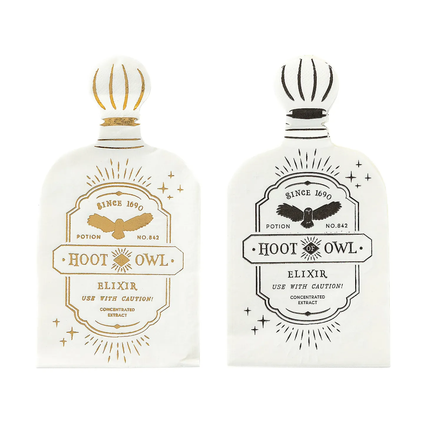 Become The Potions Master With These Shaped And Foiled Napkins! The Perfect Addition To Your Halloween Party Supplies, These Party Napkins Can Quickly Clean Up Any Party Mishaps Or Potion Spills Like Magic. The Unique Potion Bottle Shape Also Adds A Spellbinding Touch To Your Party Decor! Not Microwave Safe. Paper. (18 Pcs. Per Unit) 4″ X 8″