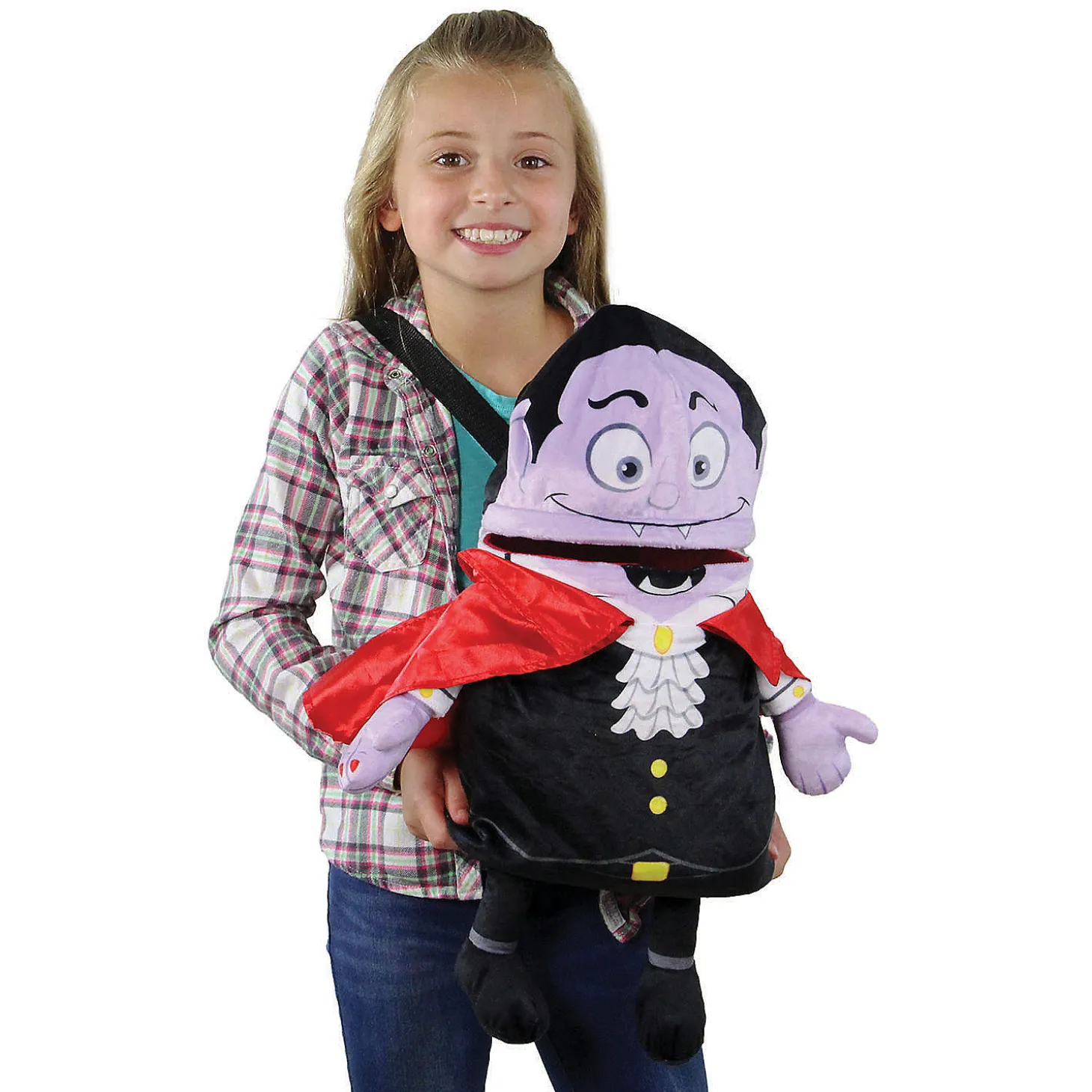 Trick-Or-Treat In Style This Year With Our Ultra-Cool Animated Halloween Candy Bag! The Unique Design Allows The Vampire’s Mouth To Open And Close So That Your Loot Can Be Gathered And Safely Stored While Trick-Or-Treating. Press The Left Hand And The Bag Will Come To Life Singing To The Tune Of The Hit Song “I Want Candy”. The Bag Can Also Be Worn As A Backpack And Is The Perfect Halloween Accessory To Complete Your Child’s Vampire Costume!. Product Features: Super Plush Halloween Bag With Flat Bottom. Adjustable Shoulder Straps With Side Release Buckles. Generously Sized To Fit Lots Of Candy. Designed To Be Worn On The Front But Can Also Be Worn As A Backpack. Press The Right Hand To Open And Close The Vampire’s Mouth. Press The Left Hand And He Will Send You A Greeting And Play A Halloween Version Of The Song “I Want Candy”. On/Off Switch Located On The Back. Requires (3) “Aaa” Size Batteries – Included. Dimensions: 21″H X 12″W X 7″D. Material(S): Polyester/Plastic/Nylon/Metal Special Shipping Information: This Item Ships Separately From Other Items In Your Order. This Item Cannot Ship To A P.O. Box. This Item May Be Subject To Additional Processing Days. Item Is Not Eligible For Expedited Shipping