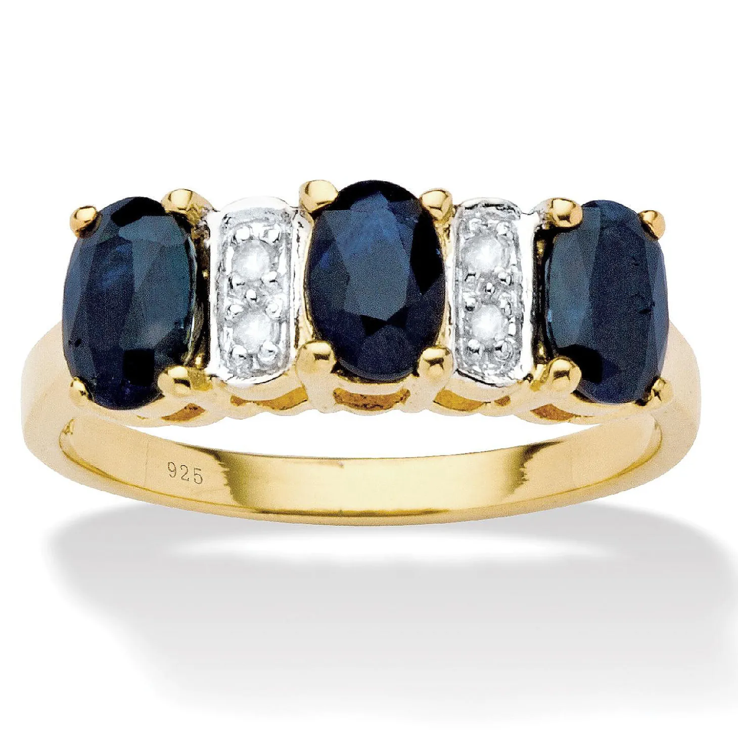 Palmbeach Jewelry Yellow Gold-Plated Sterling Silver Oval Cut Genuine Blue Sapphire And Diamond Accent Ring Sizes 5-10