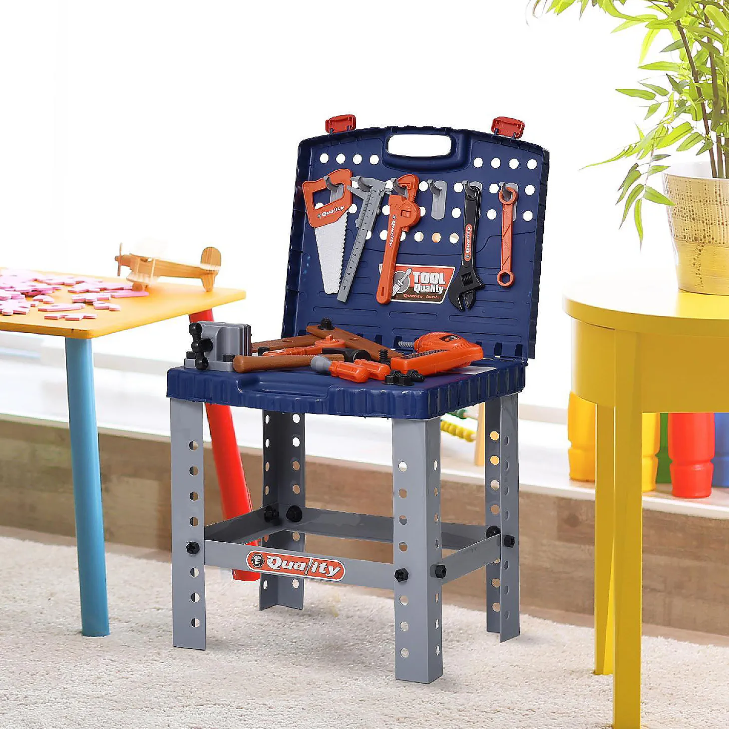 Qaba 68 Pcs Kids Pretend Series Workbench Toy Tool Play Set With Realistic Tools And Electric Drill Educational Gift For Toddler Children 3 To 6 Years Old