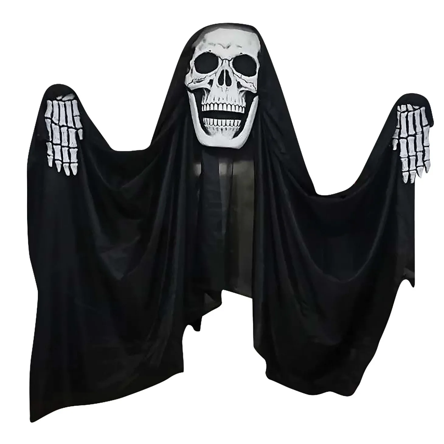 Haunting Reaper Curtain Decoration Is Cloaked In A Lengthy Black Robe That Drapes Down Off Its Lifeless Body!Place It Above Windows To Use As A Curtain Or Hang Above Doors And Entryways To Section Off Rooms. The Robe Drapes Over 9 Feet Tall And Issuitable For Large As Well As Small Spaces. Try It Out For Yourself And Transform Your Space With An Undead Nightmare!