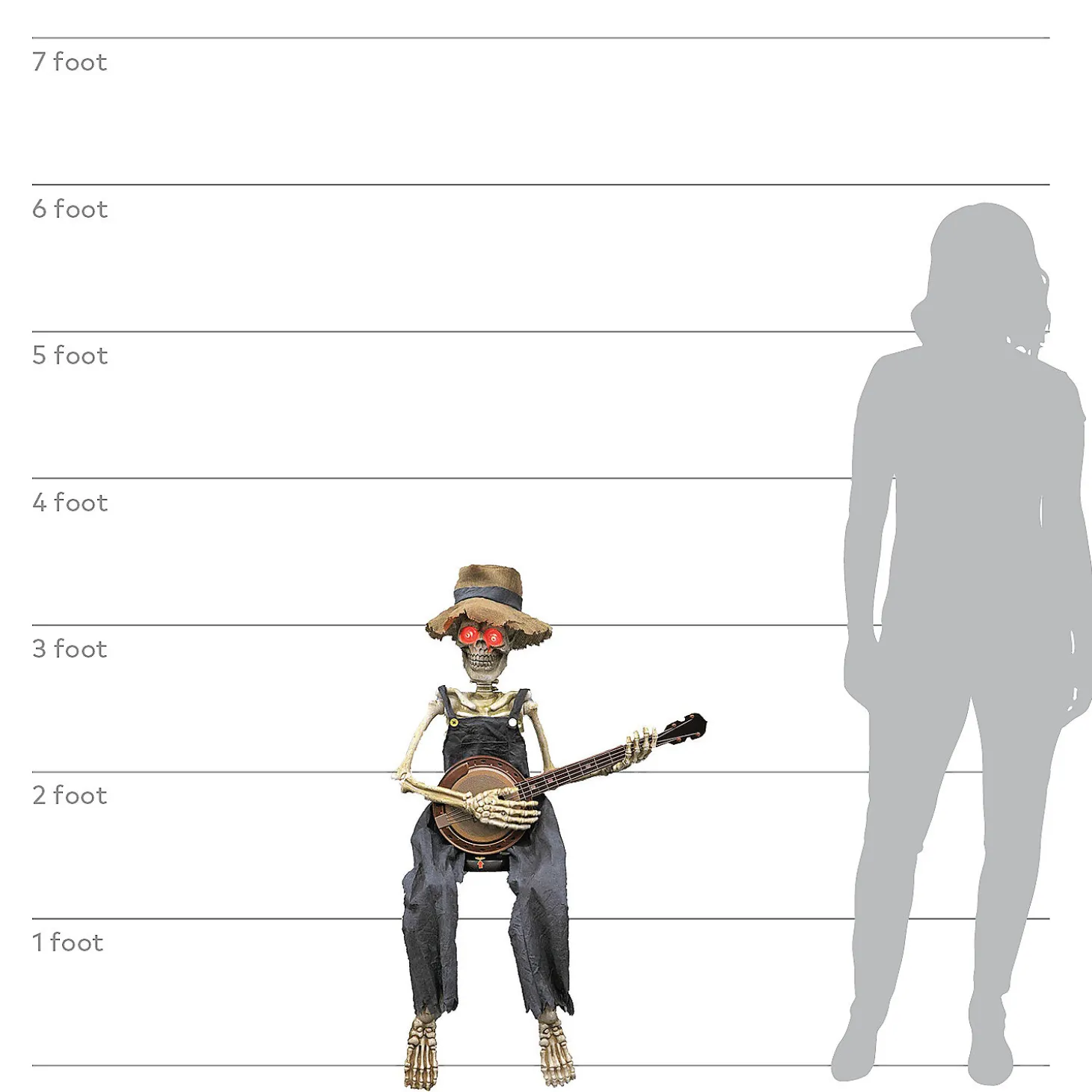 Halloween Decor That Comes To Life! This Unique Animated 39″ Skeleton Is An Animatronics Halloween Prop Strumming A Banjo! Eyes Blink Off And On And Distinct Music Makes A Great Sound Background For Your Spooky Gathering. Runs On 3 Aa Batteries, Not Included. Skeleton Wears Overalls And Sports A Straw Hat.