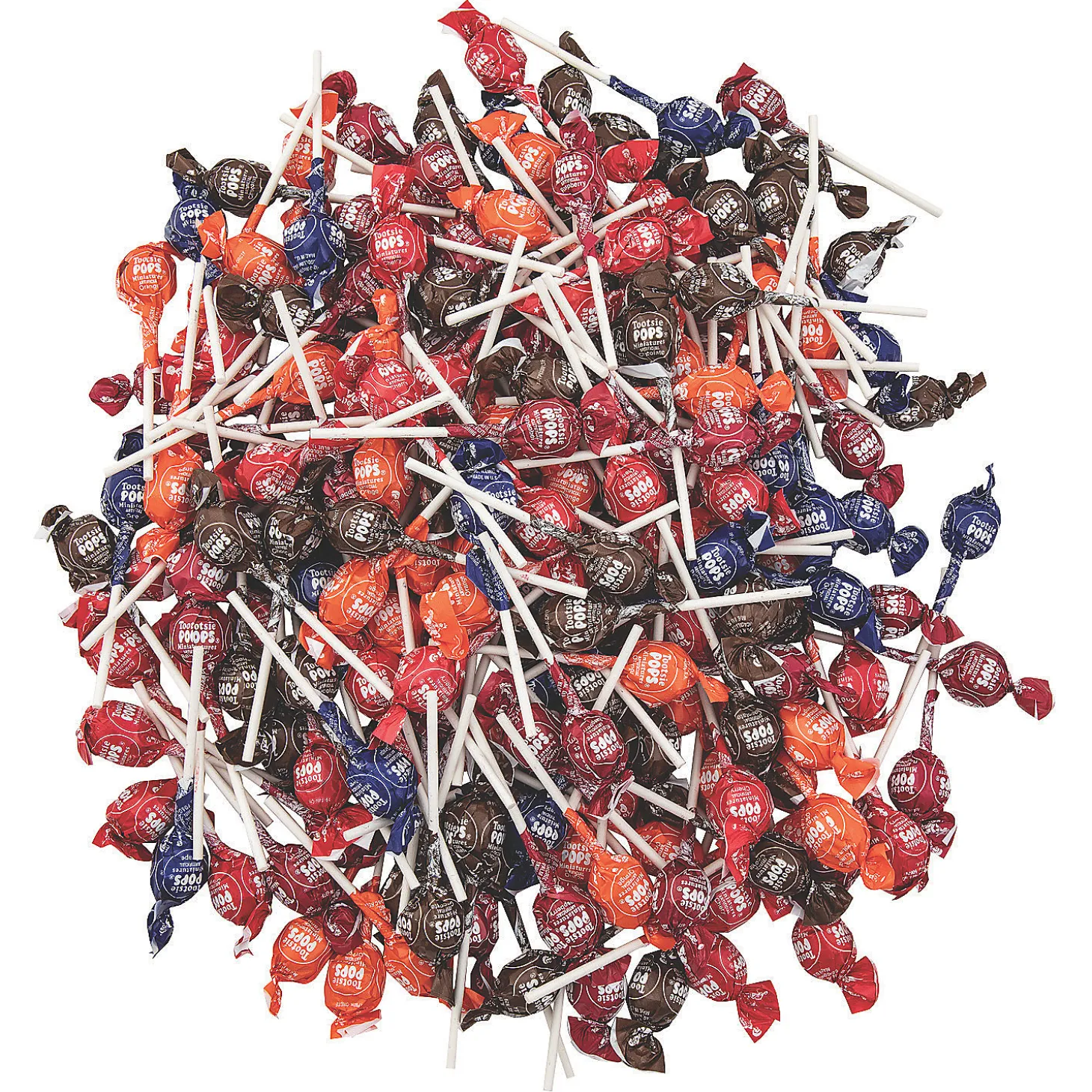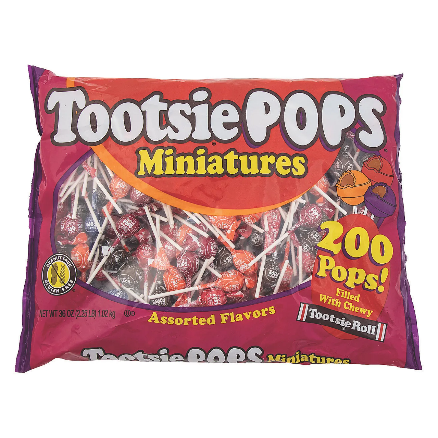 These Miniature Tootsie Roll® Pops® Are Great For Goody Bags, Halloween And Trunk Or Treat! This Lollipop Assortment Comes In Orange, Chocolate, Grape, Raspberry And Cherry Flavors. Versatile Enough To Use As Easter Candy And For Halloween Candy Too! Each 3/4″ Sucker Is On A 2 3/8″ Stick. Individually Wrapped. (Approx. 200 Pcs. Per Unit, 2 Lbs. 4 Oz.) Peanut-Free. Gluten-Free.