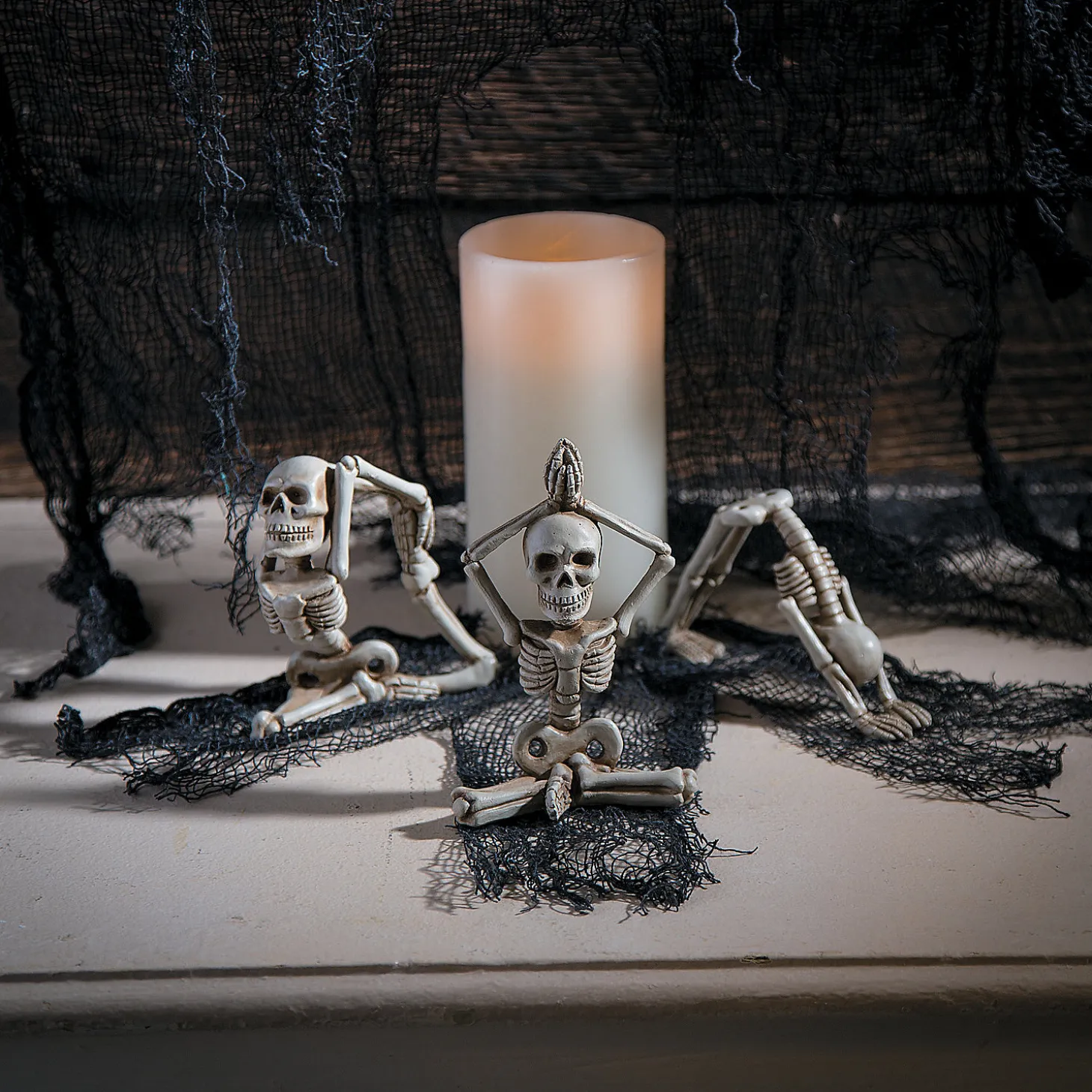 • Amazing Tabletop Decorations: Place Halloween Figurines On Tables, Shelves, Or Mantels To Create Eye-Catching Seasonal Displays.• Enchanting Centerpieces: Use Our Halloween Figures As Unique Centerpieces For Dining Tables Or Party Spreads, Enhancing The Overall Ambiance.• Create Eye-Catching Window Displays: Arrange Some Figurines In Your Windows To Create A Spooky And Festive Scene Visible Both Inside And Outside Your Home.Product Description:Getting Fit For Fright Night! These Skeleton Halloween Decorations Are Perfect Halloween Ideas For Dressing Your Home Up In The Spirit Of The Scary Season. They’Re Awesome Home Accents That Make Your Party Space A Spooky Place! From Your Mantel To Your Coffee Table, These Yogis Are Sure To Be Conversation Starters. Hand Painted, Slight Variations Will Occur.Size: 5″Quantity: 3Material: Resin.